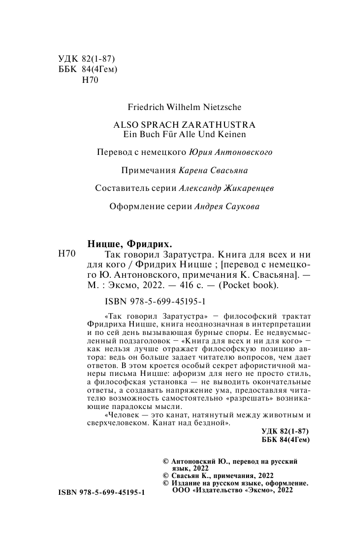 Книга: Так говорил Заратустра (Ницше Фридрих Вильгельм); ООО "Издательство "Эксмо", 2023