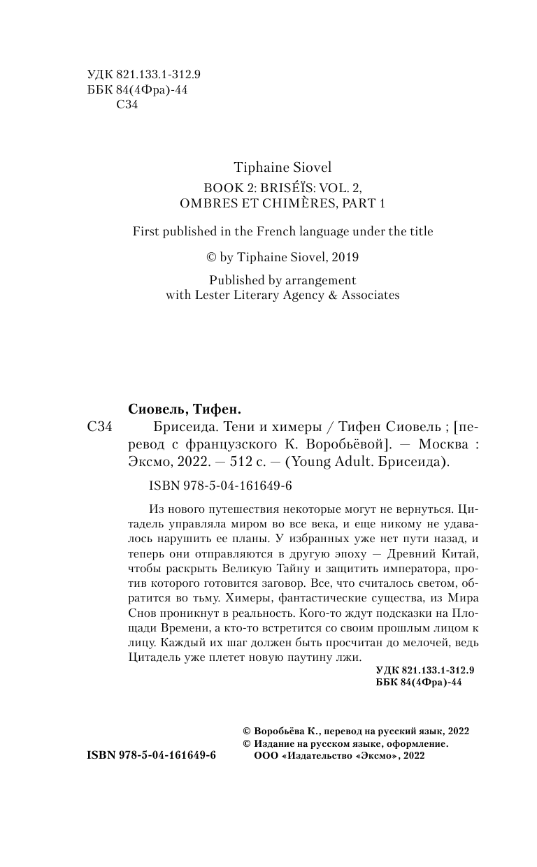 Книга: Брисеида. Тени и химеры (Сиовель Тифен); ООО "Издательство "Эксмо", 2022