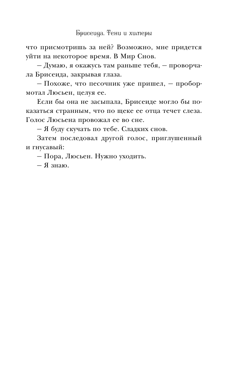 Несмотря на то, что это фантастическая история, она не лишена глубины и философских мыслей. В процессе чтения книги мы задаем себе вопросы о природе человеческой сущности, о роли судьбы и свободы в наших жизнях. Эти моменты делают «Брисеиду. Тени и химеры» более проницательной и интересной.