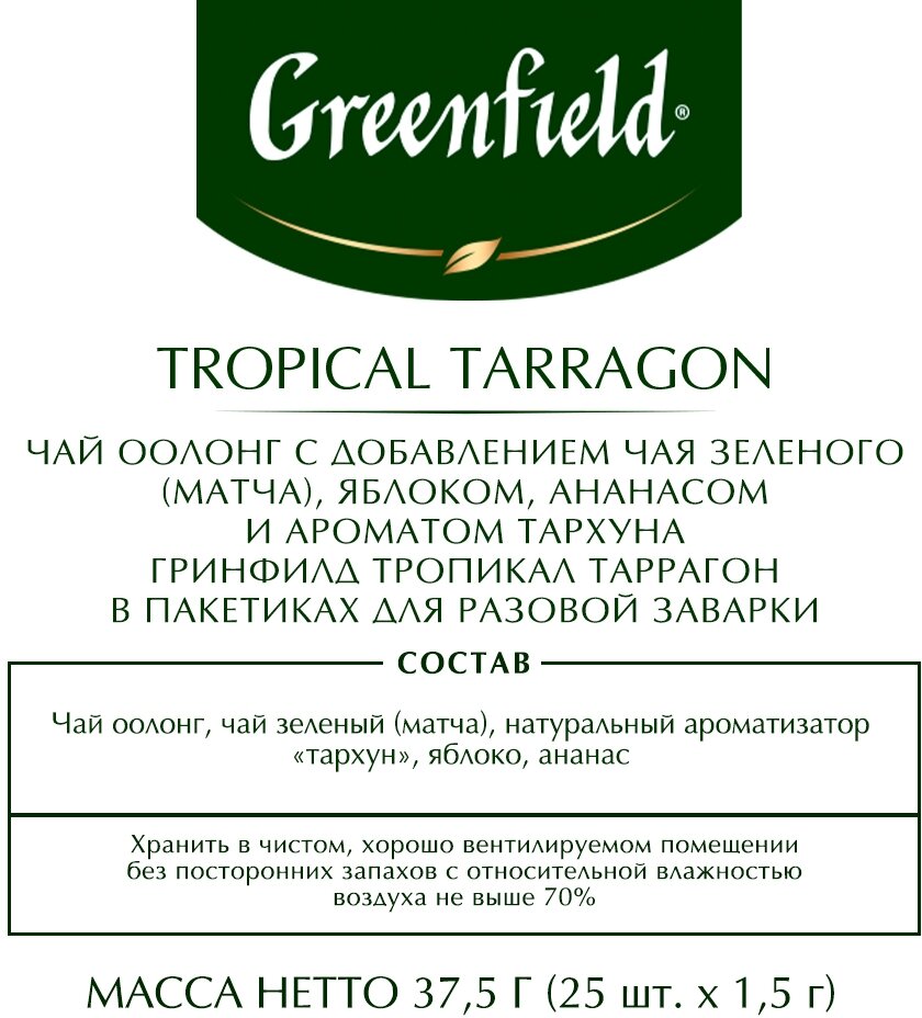 Модель: Чай Greenfield Tropical Tarragon зеленый 25 пакетиков по 1.5 г