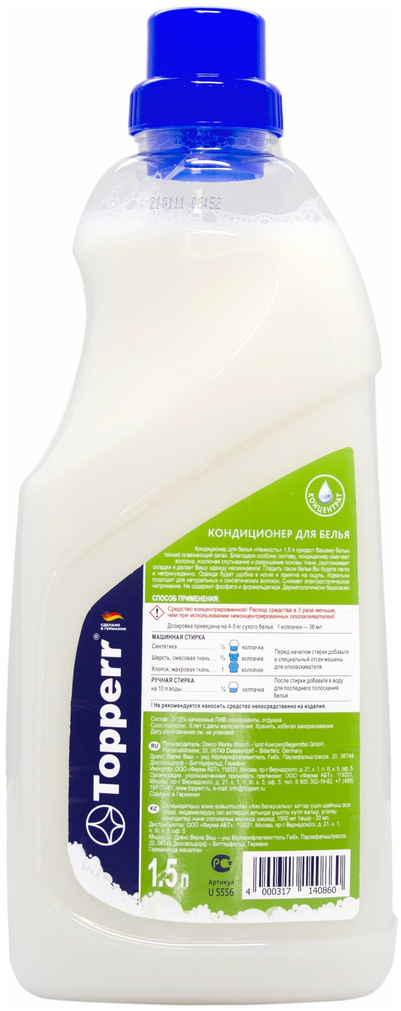 | Состав | 5-15% катионные пав, консерванты, краситель натуральный, вода, отдушка. |
