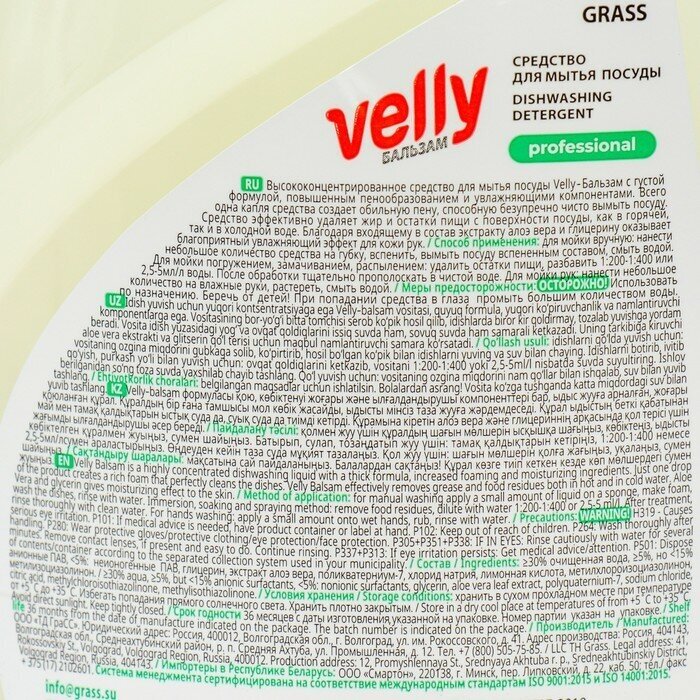 Средство для мытья посуды Grass Velly бальзам 1л