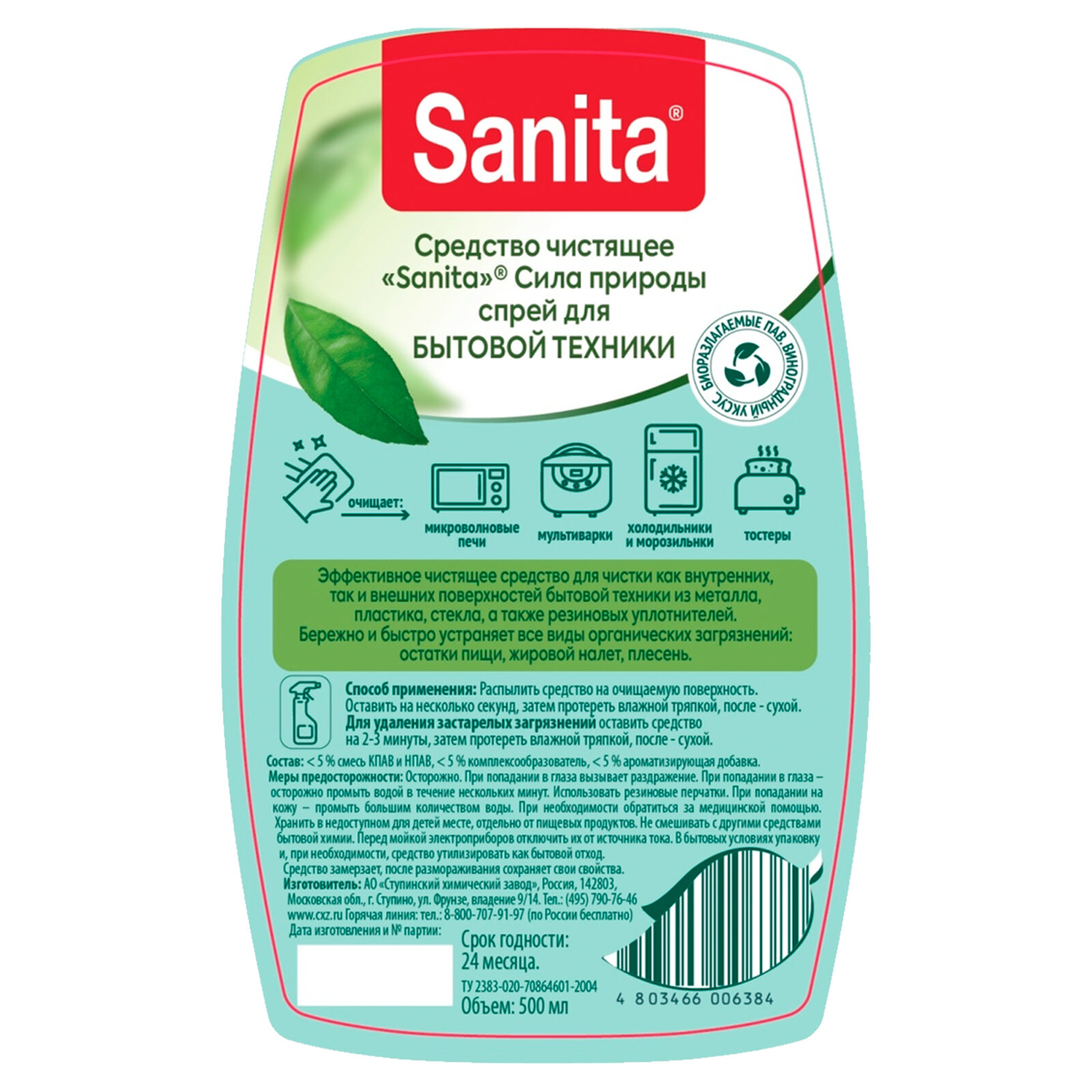 Средство чистящее Sanita для бытовой техники 500мл 22718