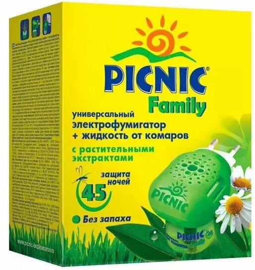 - Набор фумигатор + жидкость от комаров "Picnic Family", 30мл (45 ночей)