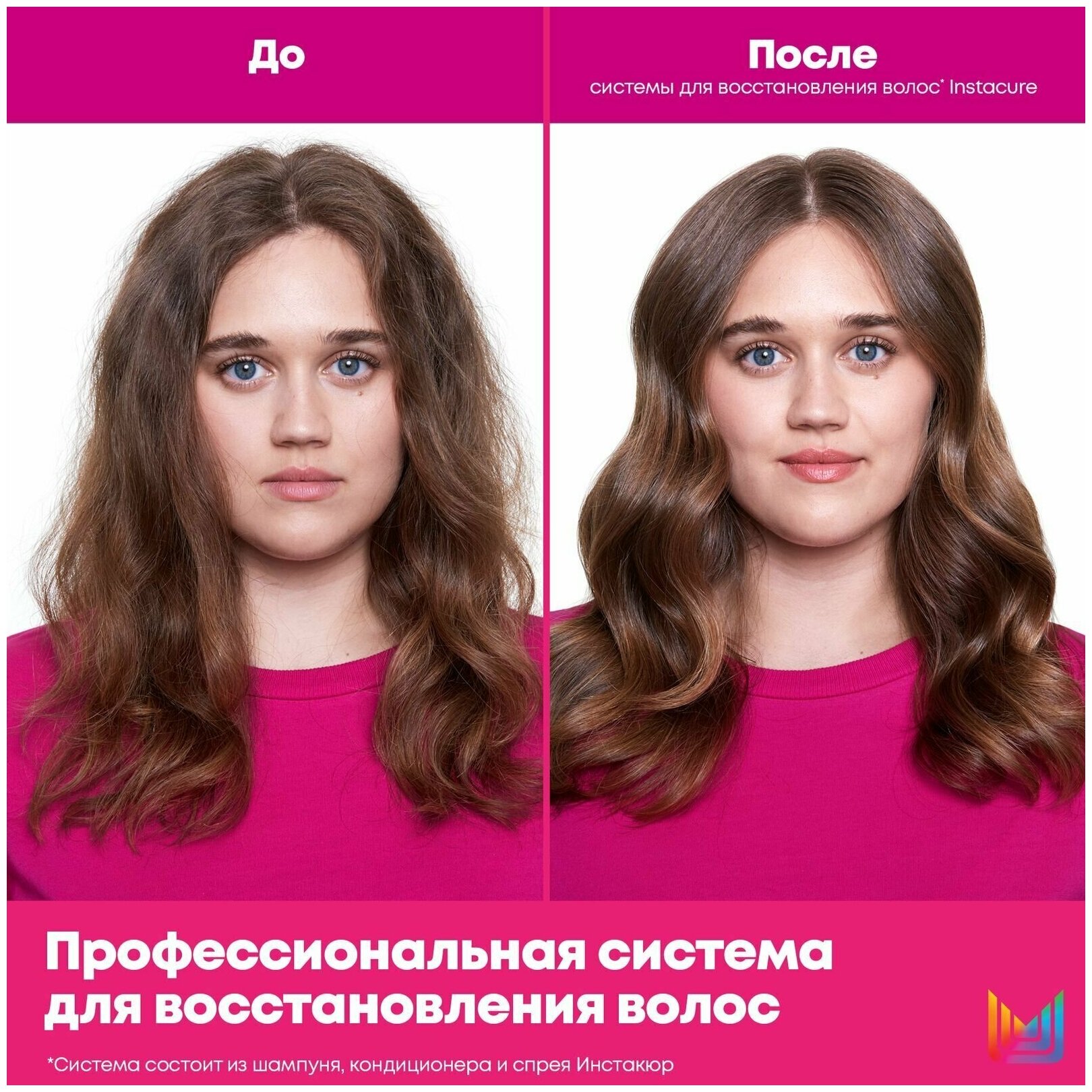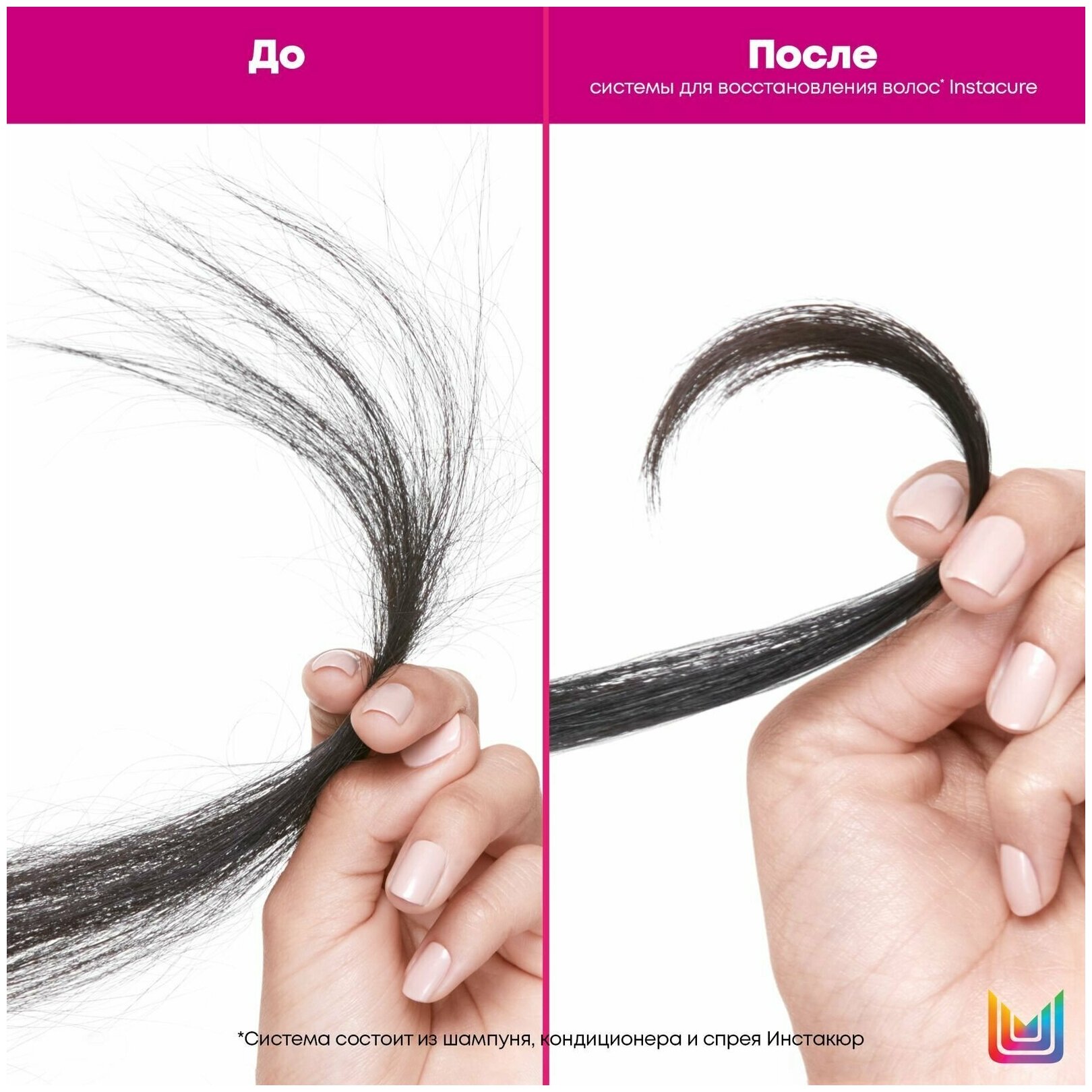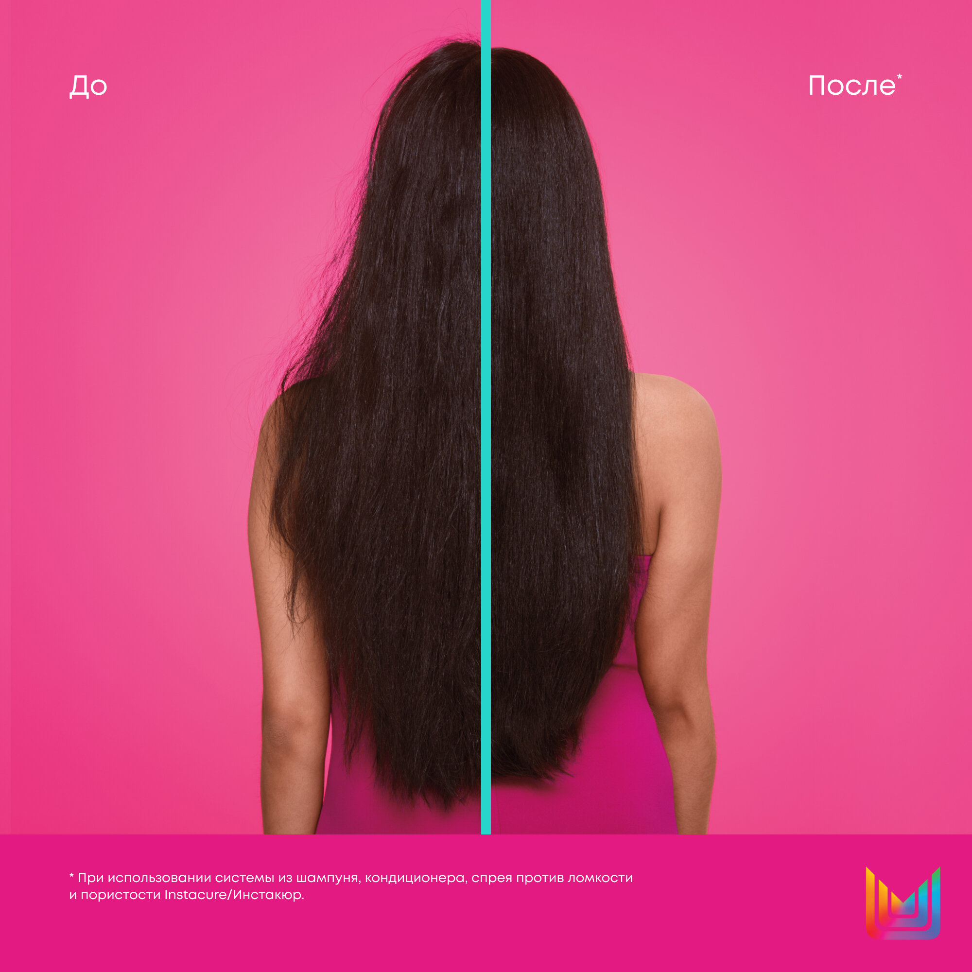 После шампуня Instacure против ломкости нанести кондиционер, смыть водой. Далее нанести спрей Instacure, заполняющий пористую структуру волоса.