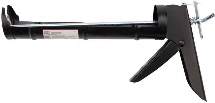 Корпус выполнен из стали, обладающей долгим сроком службы и устойчивостью к механическим повреждениям. Для предотвращения износа механизма предусмотрен зубчатый шток. Модель подходит для работы с герметиками в картриджах.