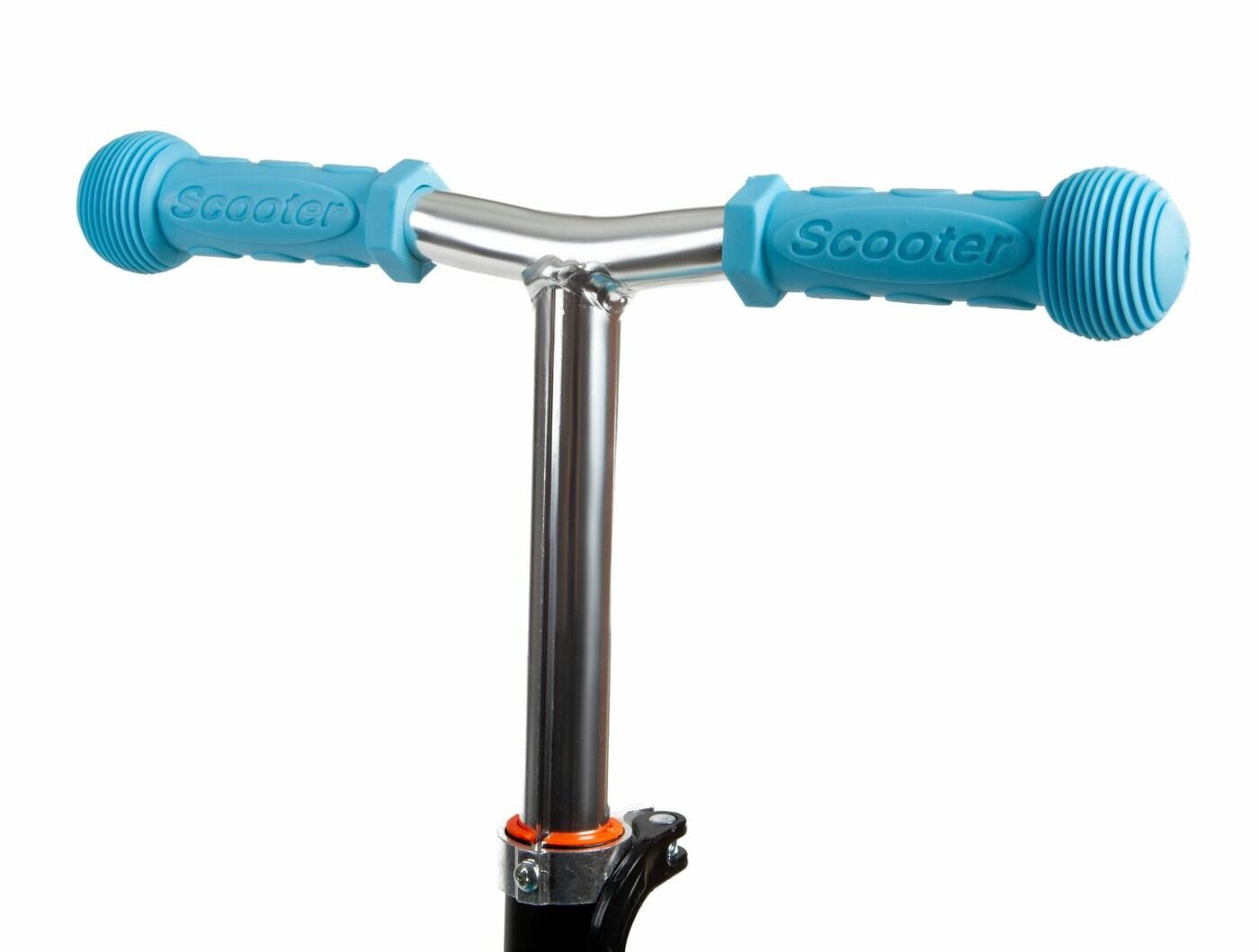 Самокат Novatrack Disco-Kids Foxx, голубой () имеет три полиуретановых колеса. Это обеспечивает устойчивость детского транспорта и помогает научиться держать равновесие. Для остановки в конструкции модели есть ножной тормоз, который встроен в крыло заднего колеса. Самокат изготовлен из качественных материалов. Металлическая рулевая стойка не деформируется при ударах или падениях. Модель выдерживает нагрузку до 25 кг.