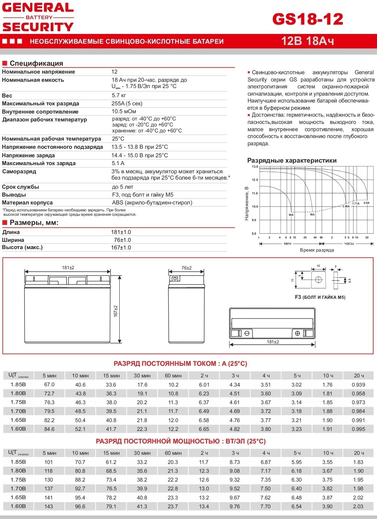 | Номинальная емкость, заявленная производителем | 18 Ач |