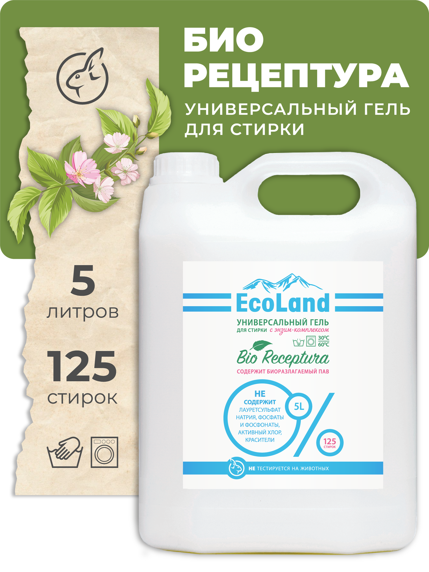 гель для стирки ECOLAND Bio Receptura универсальный 5л (6303)