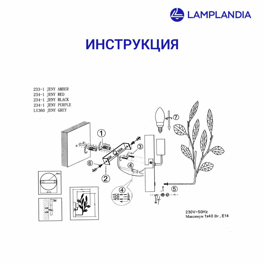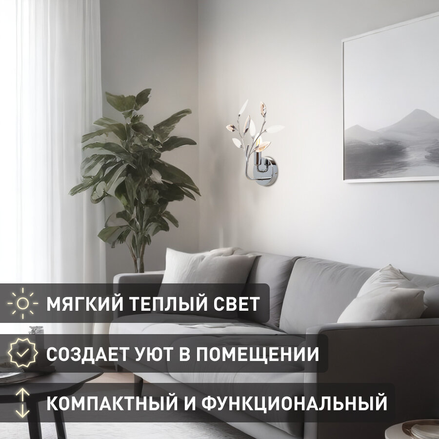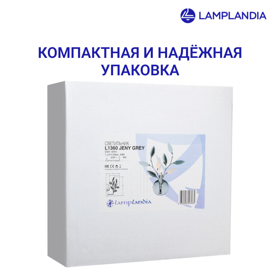 Бра Lamplandia L1360 JENY GREY - это современное и функциональное решение для освещения различных помещений. Произведенное в Китае Российским брендом Лампландия, это изделие сочетает в себе высокое качество и стильный дизайн.Бра имеет стильный серый цвет плафона и арматуры, что позволяет ему гармонично вписаться в любой интерьер. Материал веточек в флористическом стиле - акрил, а арматура изготовлена из металла с хромированным покрытием.Светильник оснащен цоколем типа E14, который поддерживает использование различных видов ламп: люминесцентных, накаливания и светодиодных. Максимальная мощность лампы составляет 40 Вт.Бра Lamplandia L1360 JENY GREY имеет степень пылевлагозащиты IP20 и относится к классу электробезопасности I. Это обеспечивает надежную защиту от пыли, а также безопасность использования в быту.Светильник имеет ширину 30 см и весит всего 0,7 кг, что делает его легким и удобным для установки.В комплект поставки входят инструкция по сборке, паспорт и сам светильник.
