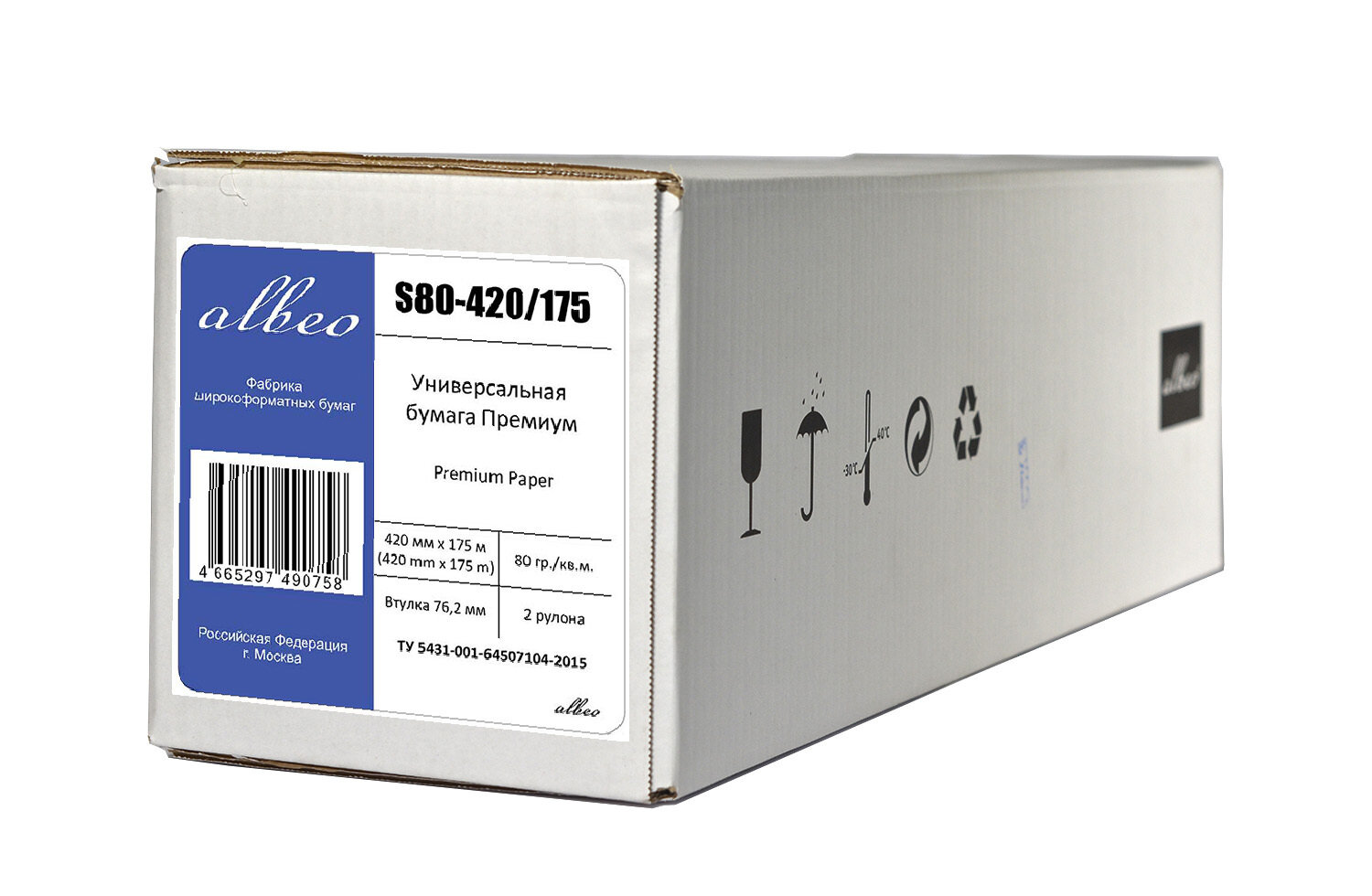 Рулонная инженерная бумага Albeo Engineer Premium Paper 80 г/м2, 0.420x175 м, 76.2 мм (S80-420/175)
