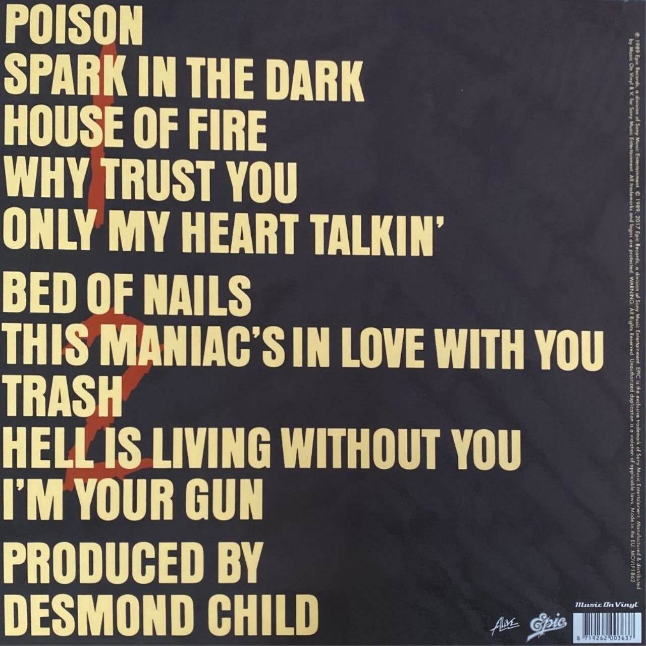 | Трек-лист | Poison, Spark In The Dark, House Of Fire, Why Trust You, Only My Heart Talkin, Bed Of Nails, This Maniacs In Love With You, Trash, Hell Is Living Without You, Im Your Gun |