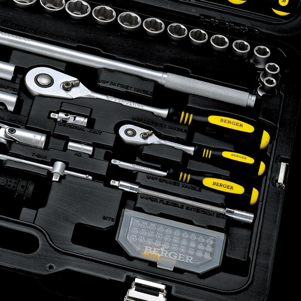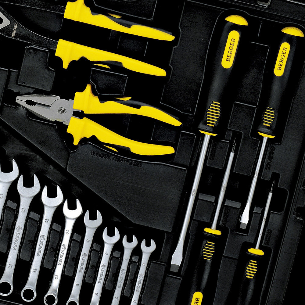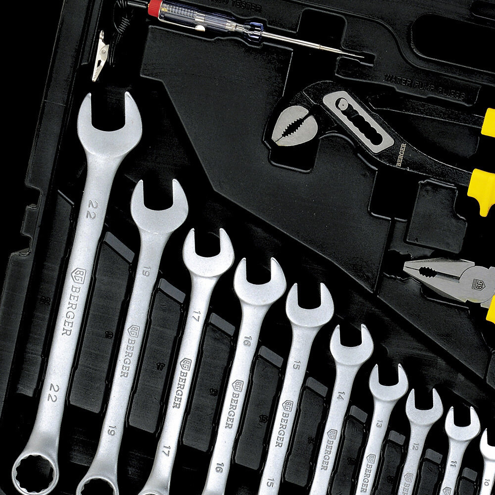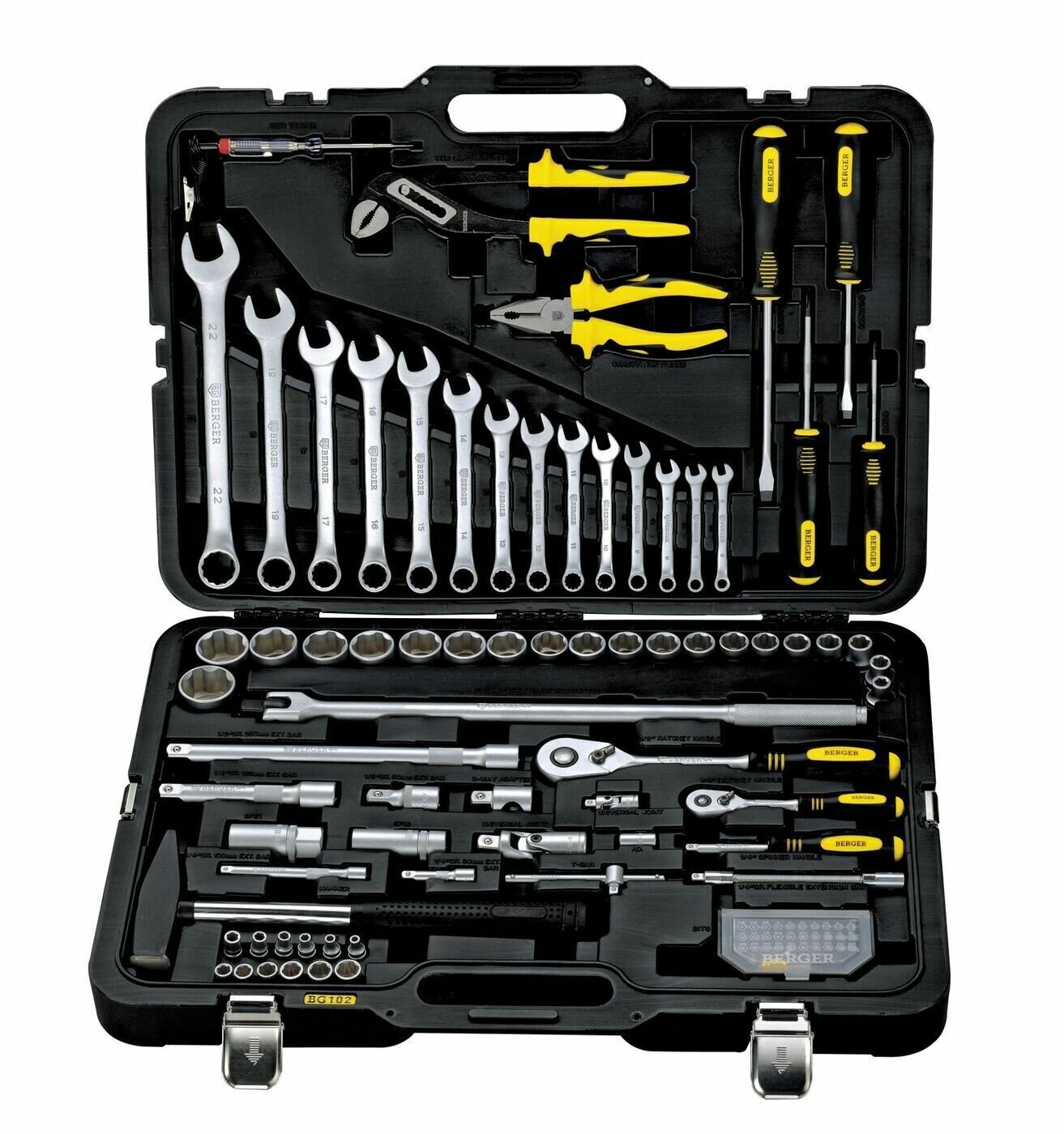 Универсальный набор инструментов BERGER предназначен для профессионального использования. Набор является практичным благодаря широкому ассортименту элементов, которые входят в его состав. Все предметы выполнены из высокопрочной легированной стали, которая проходит процесс специализированной обработки. Набор поставляется в удобном высокопрочном пластиковом кейсе для хранения и транспортировки.
