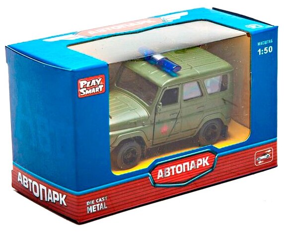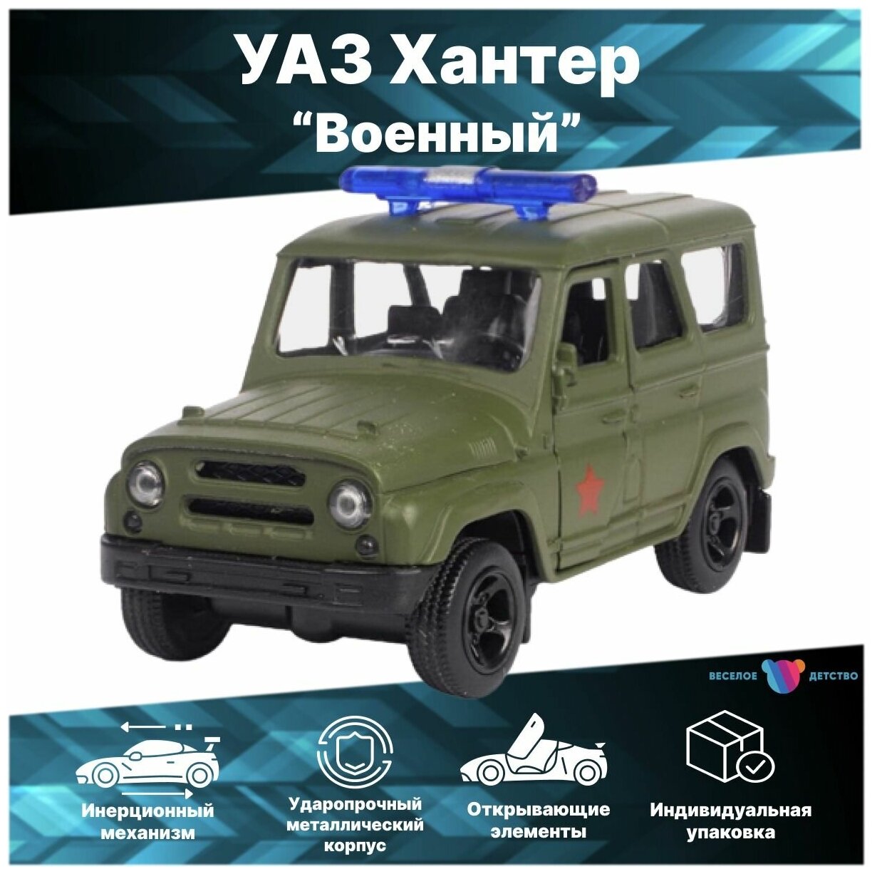 Металлическая машина Хантер в дизайне военного автомобиля станет прекрасным экземпляром коллекции реалистичных моделей машин Вашего юного любителя техники. Игрушка выполнена точной копией служебного автомобиля автопарка армии Советского Союза, выполненную в масштабе 1:50. Длина машинки 9 см. Особенности: - Автомобиль выполнен в защитном зеленом цвете, с декоративным проблесковым маячком на крыше и красной звездой на дверце. - Прозрачные стекла и открывающиеся двери в кабину водителя, позволяют рассмотреть их детальное исполнение. - Подвижные колеса с инерционным механизмом движения позволят ребенку придавать машине ускорение, что сделает игру еще реалистичнее. - Машине не страшны аварии и столкновения, так как она выполнена из металла, некоторые мелкие элементы и салон -из прочного пластика. - Автомобиль разнообразит сюжеты игр на военную тематику, способствуя развитию воображения, координации движений и мелкой моторики рук. Данная модель подойдет не только для игр юных автолюбителей, но и может занять достойное место у коллекционера.