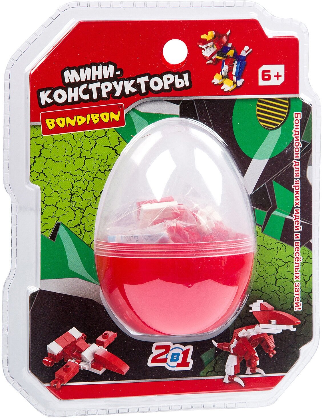 Мини-конструктор в красном яйце 2в1 Динозавр 51 деталь Bondibon