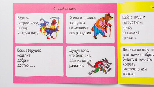 С помощью этого увлекательного пособия ребёнок вспомнит любимые сказки, будет отгадывать загадки, узнавать героев по силуэту. Задания от нейропсихологов помогут развить мышление, воображение, речь. А игры с многоразовыми наклейками помогут тренировать мелкую моторику и научат ориентироваться в пространстве. Играйте с удовольствием!
