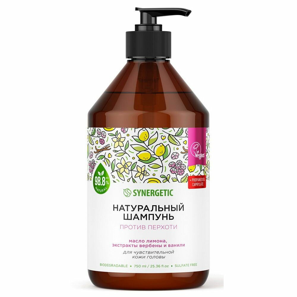 Натуральный бессульфатный шампунь SYNERGETIC «Против перхоти для чувствительной кожи головы» 250 мл