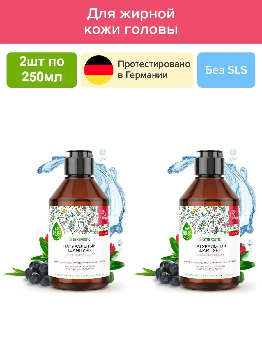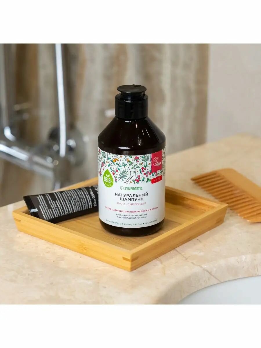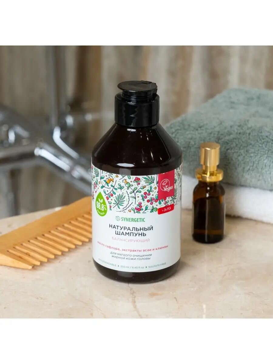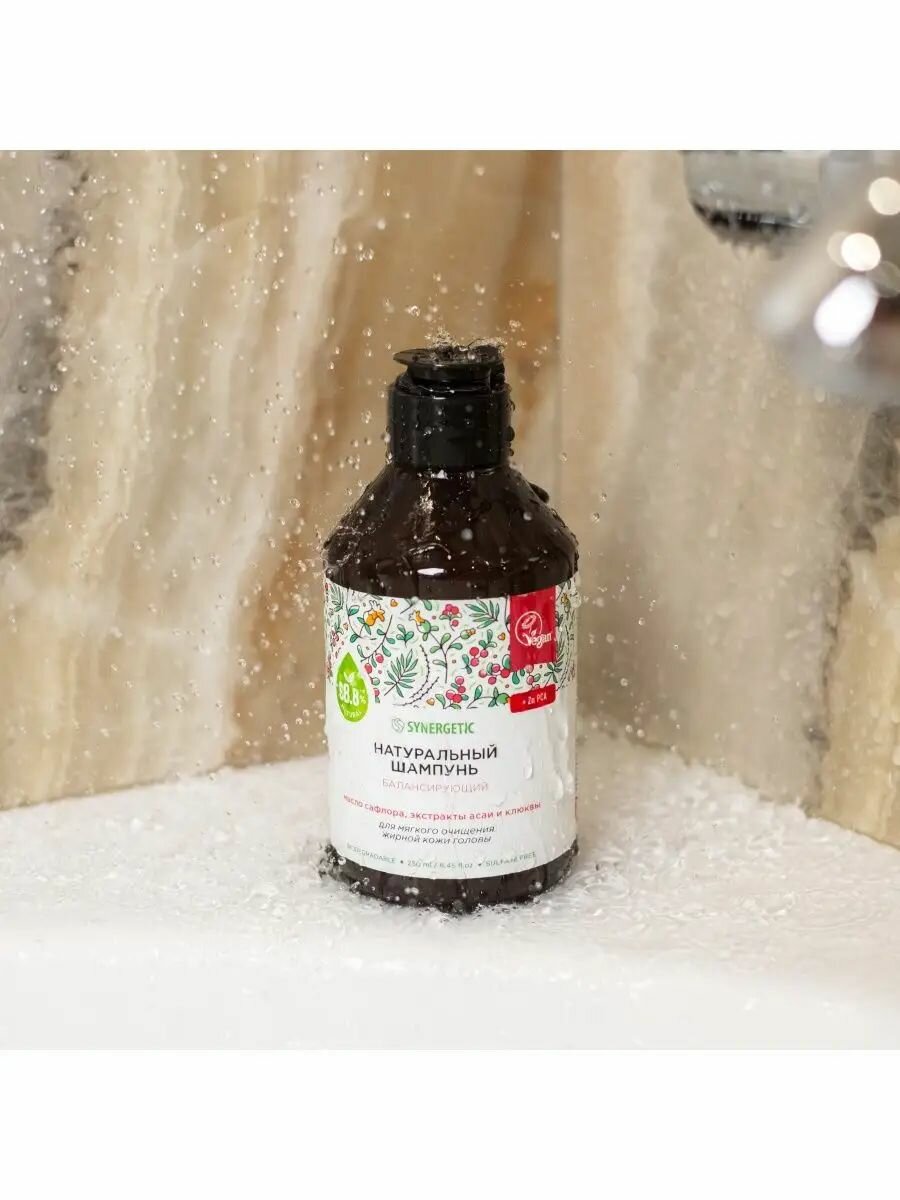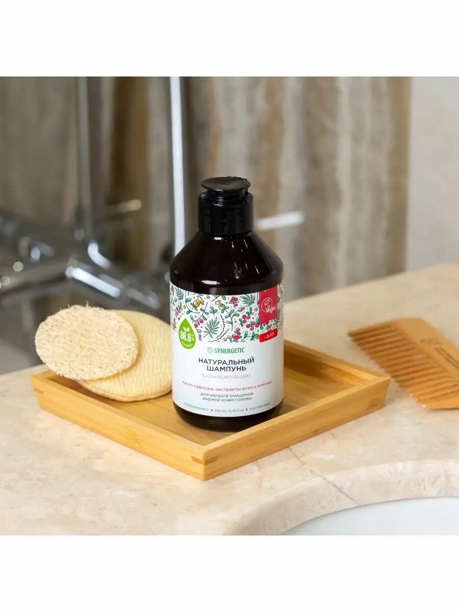 Натуральный бессульфатный шампунь SYNERGETIC «Балансирующий для мягкого очищения жирной кожи головы» 250 мл Синергетик