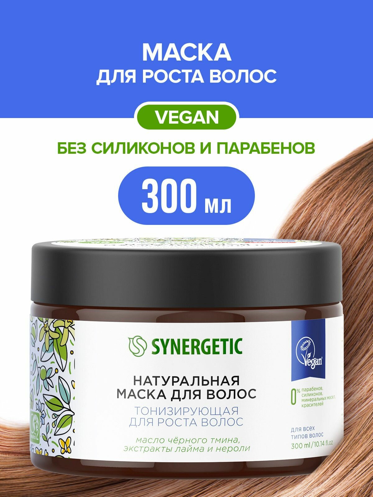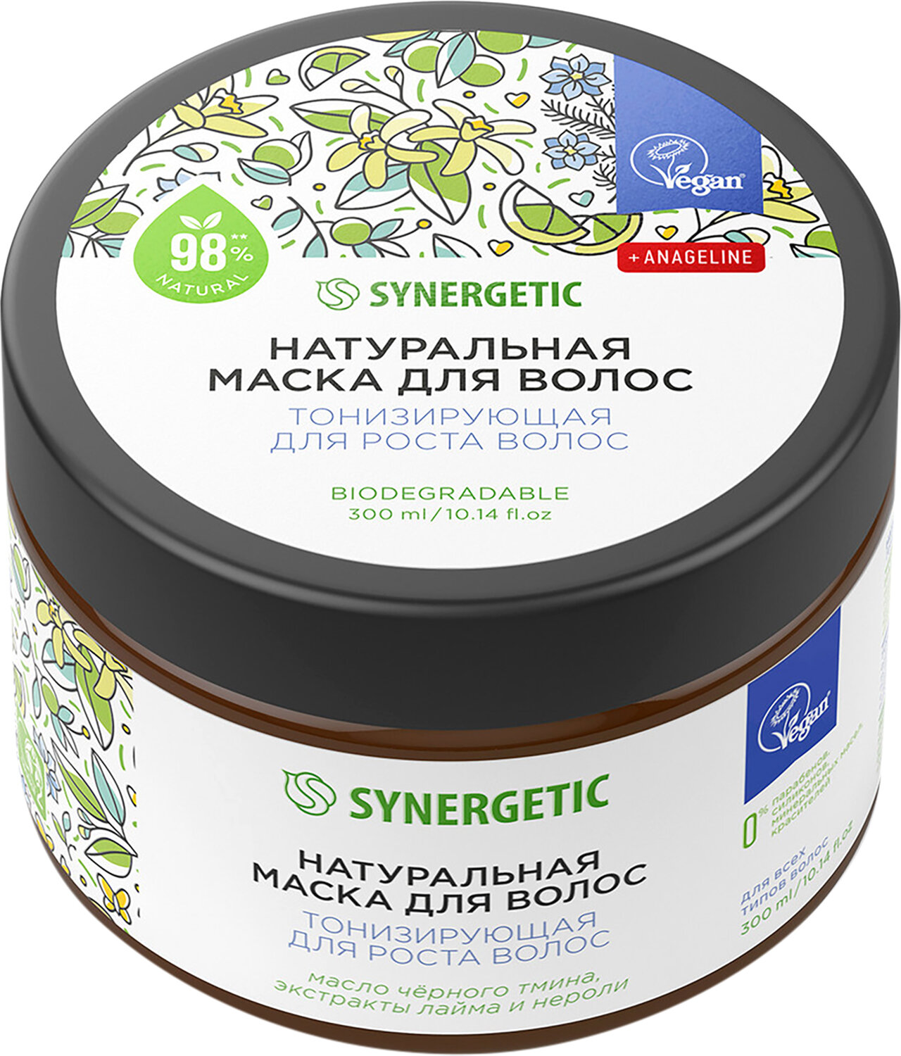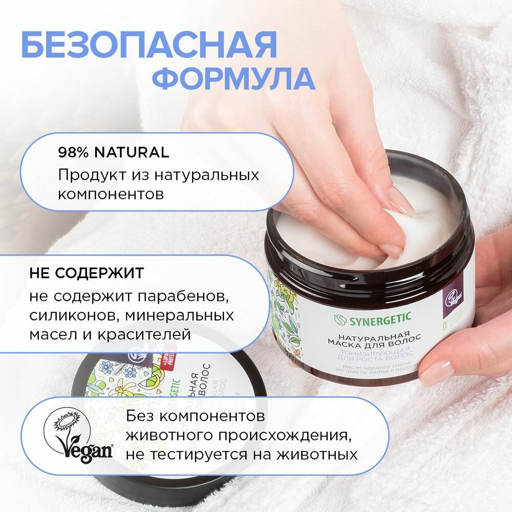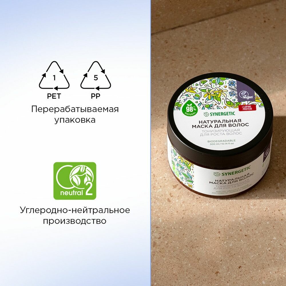 Натуральная маска SYNERGETIC «Тонизирующая для роста волос» 300 мл