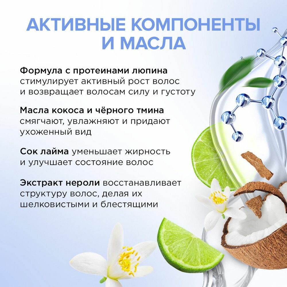 | Химический состав | Aqua, Cetearyl Alcohol* (натуральный загуститель), Cocos Nucifera Oil* (масло кокоса), Glycerin*(растительный увлажнитель), Distearoylethyl Dimonium Chloride* (мягкий кондиционер), Hydrolyzed Lupin Protein (протеины люпина, ускоряющие рост волос), Hydroxyethylcellulose (натуральный загуститель, кондиционер), Cetyl Esters* (натуральный смягчающий компонент), Olus Oil* (масло семян рапса), Citrus Aurantium Amara (Bitter Orange) Flower Water (экстракт нероли), Citrus Aurantifolia Juice (сок лайма), Inulin (растительный пребиотик), Saccharide Isomerate* (натуральный увлажнитель), Glyceryl Stearate* (натуральный эмульгатор), Lauryl Glucoside* (мягкий ПАВ), Guar Hydroxypropyltrimonium Chloride* (натуральный кондиционер), Dehydroacetic Acid*, Benzyl Alcohol*, Benzoic Acid*, Potassium Sorbate* (природные консерванты), Citric Acid* (лимонная кислота, регулятор кислотности), Sodium Citrate* (натуральный стабилизатор), Parfum |