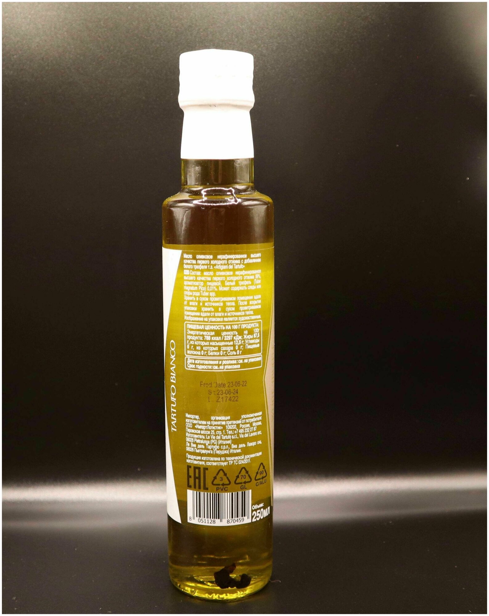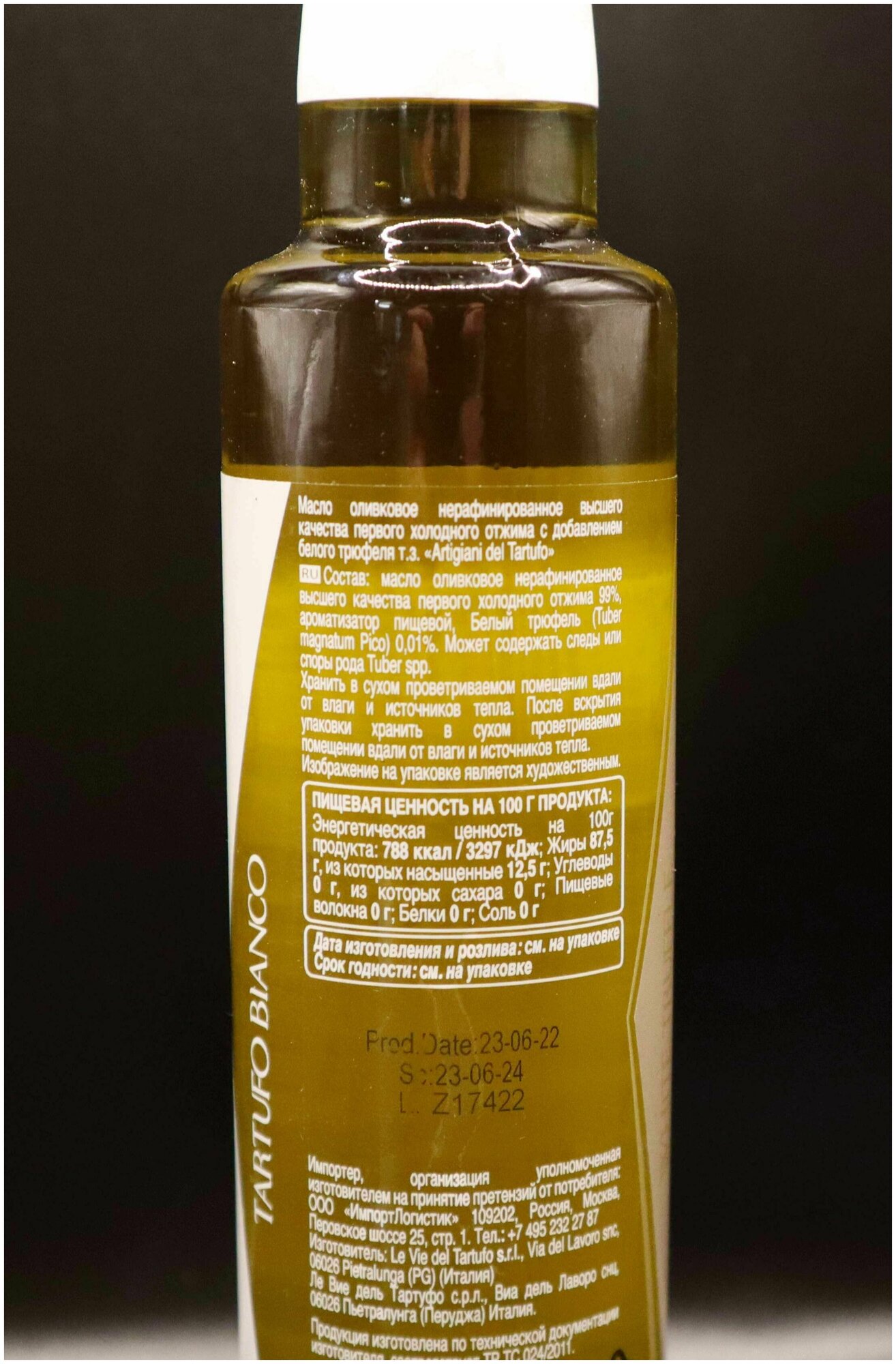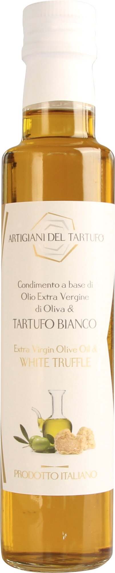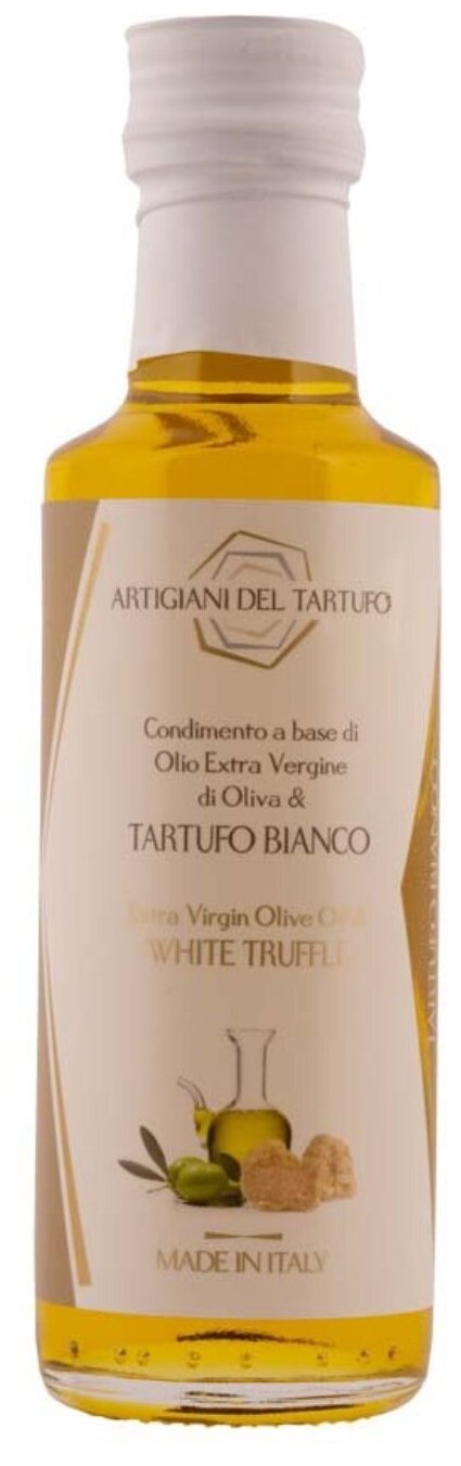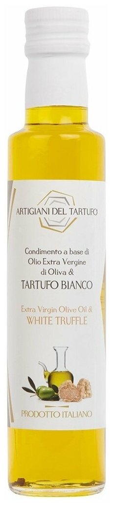 Масло Оливковое нерафинированное высшего качества холодного отжима с добавлением белого трюфеля Artigiani del Tartufo 250 мл отличается очень ярким и характерным ароматом, будто стелется по блюду, равномерно насыщая его едва уловимой пикантностью, которую невозможно получить с любым другим продуктом. На этом масле не рекомендуется готовить, его предлагается использовать для приготовления салатов и соусов. Идеально подходит для всех блюд, от брускетты до более богатых рецептов. Придаст легко узнаваемый аромат белого трюфеля любому блюду: салатам, соусам, пасте, ризотто, картофелю, блюдам из яиц. обогатит все привычные блюда на Вашем столе. Прекрасно подойдет для заправки овощных, фруктовых салатов, каш, выпечки хлебобулочных изделий, блюд из мяса и рыбы, супов. Масло имеет особую задачу - улучшить, гармонизировать и придать особый вкус салатам, овощам, мясу или рыбе. Оливковое масло полезно содержанием Омега-3 ненасыщенных жирных кислот, которые необходимы для нашего организма, они служат для укрепления иммунной системы, улучшения работы мозга и состояния суставов, профилактики онкологических заболеваний, снижения лишнего веса, снижения уровня холестерина и риска возникновения заболеваний сердца. Оливковое Масло может послужить хорошим продуктовым подарком, Вкусным подарком на Новый год и Рождество!