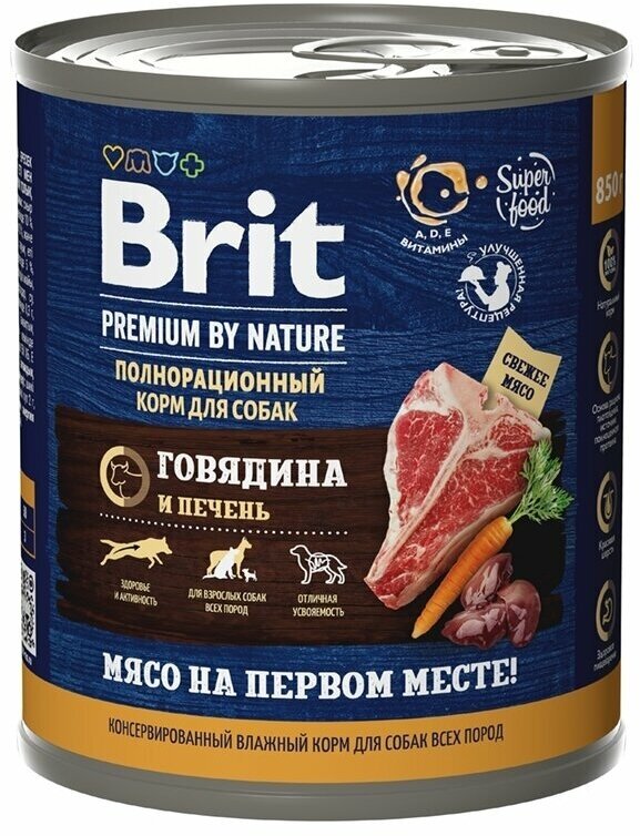 Влажный корм для собак Brit Premium by Nature с говядиной и печенью 850г
