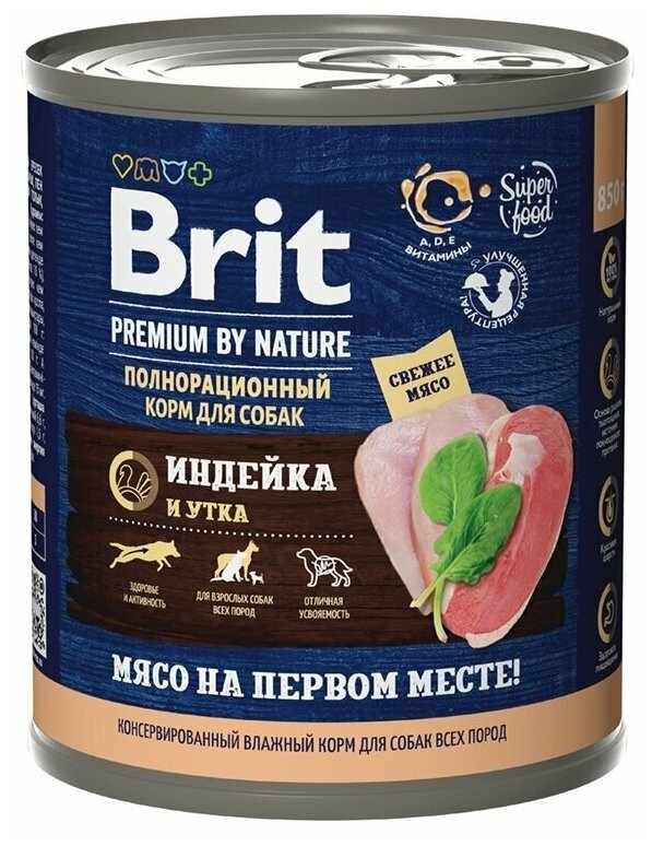 Влажный корм для собак Brit Premium by Nature с индейкой и уткой 850г