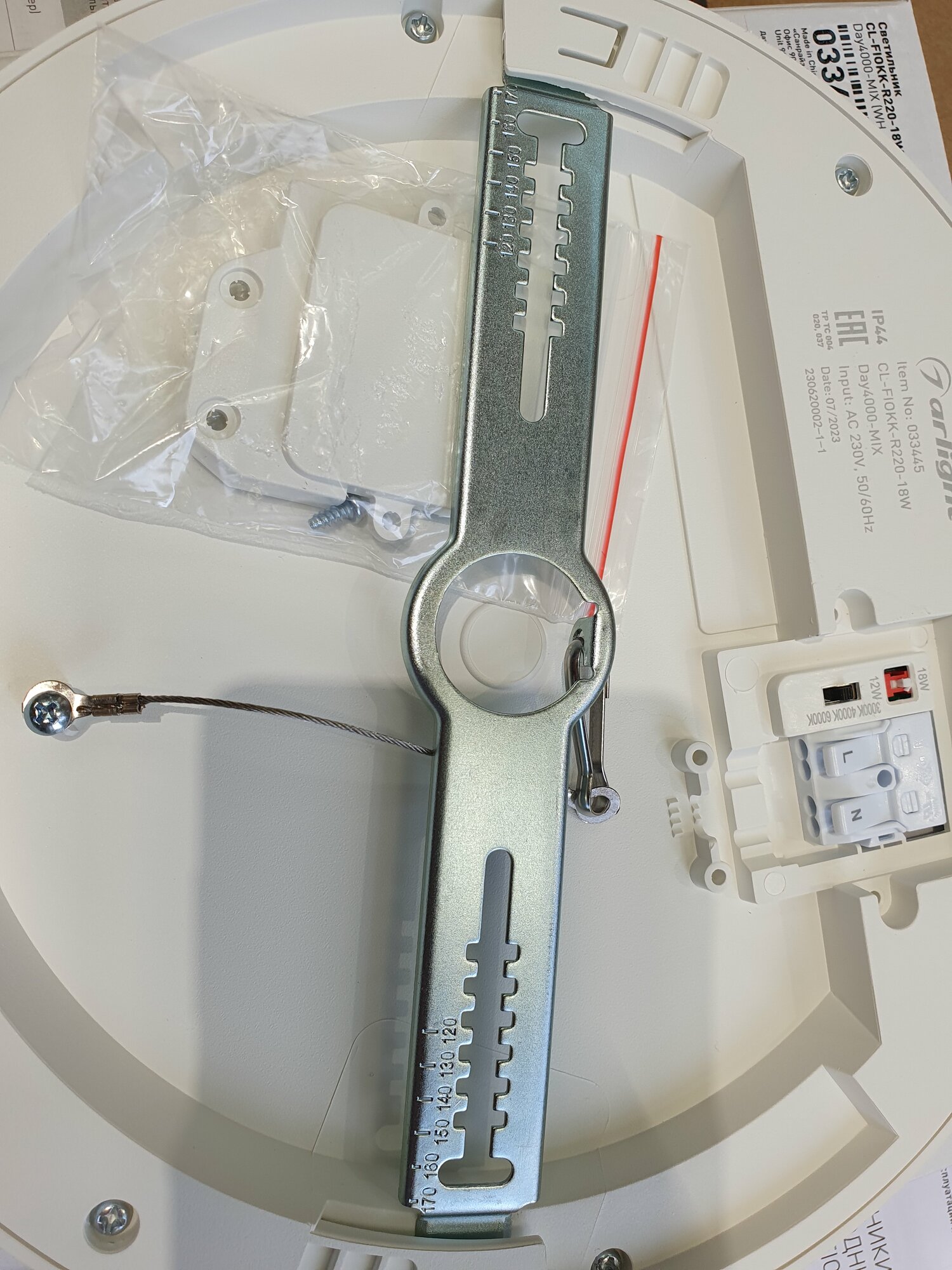 Многофункциональный накладной/встраиваемый светильник CL-FIOKK-R220-18W Day4000-MIX (WH, 120 deg, 230V) с изменяемой мощностью и цветовой температурой. Мощность 12–18 Вт, цветовая температура 3000/4000/6000 K. Светильник с индексом цветопередачи CRI>80 и широким углом излучения 120° предназначен для освещения мест общего пользования: вестибюлей, лестничных площадок, лифтовых холлов и прочих коммунальных и бытовых помещений. Простая и быстрая установка на потолок при помощи монтажной планки или в нишу с помощью пружин. Встроенный драйвер для быстрого подключения к сети 230 В. Белый круглый корпус из пластика, экран из поликарбоната и степень пылевлагозащиты IP44 обеспечивают надежную эксплуатацию светильника в помещениях общего пользования и сфере ЖКХ. Комплект крепежа для встраиваемого монтажа поставляется отдельно.