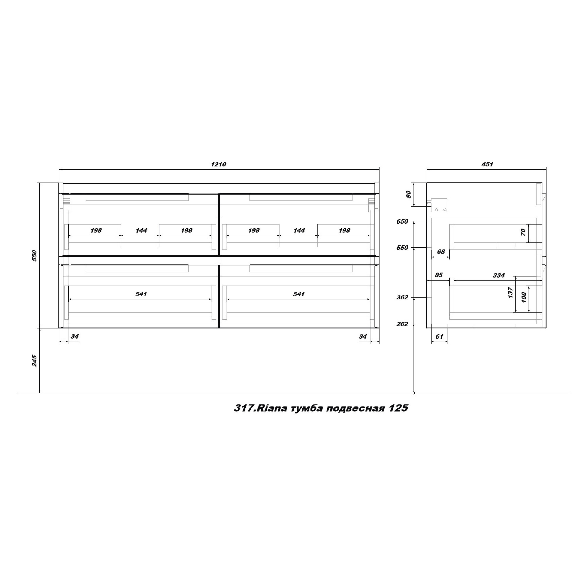 Тумба под раковину Sanstar Riana 125 317.1-1.5.1. подвесная.