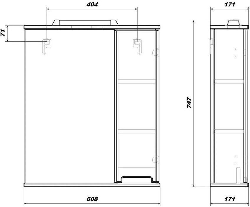 | ВКоробке | Зеркало-шкаф - 1 шт. Комплект подсветки - 1 шт. Владная полка - 2 шт. Комплект доводчиков - 1 шт. Инструкция - 1 шт. |
