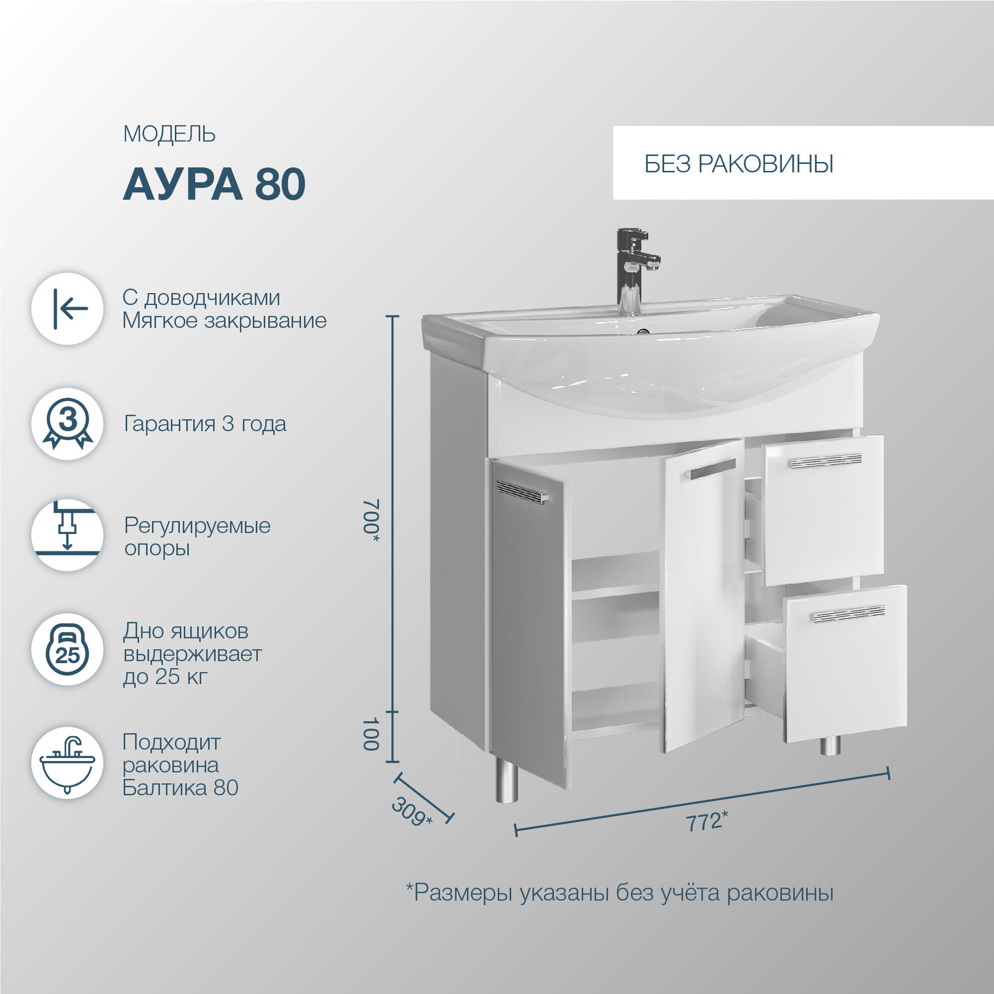 Тумба под раковину Sanstar Аура 80 299.1-1.4.1. напольная.