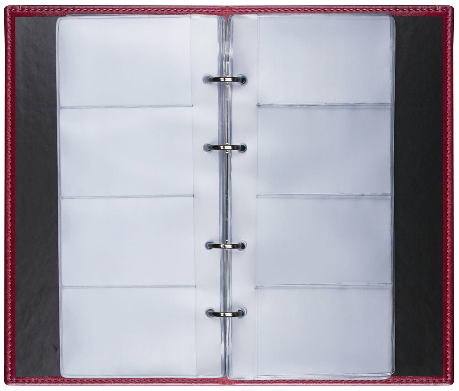 для удобства перелистования у визитницы есть кольца-держатели, они обеспечивают полное раскрытие разворота;