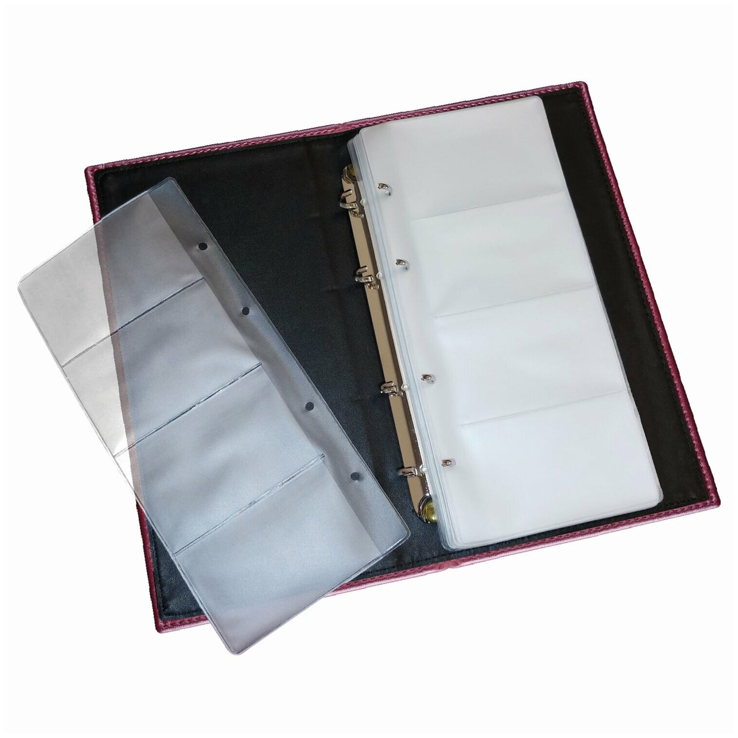 в изделии предусмотрено 30 листов для хранения, вмещающие в себя 240 карточек;