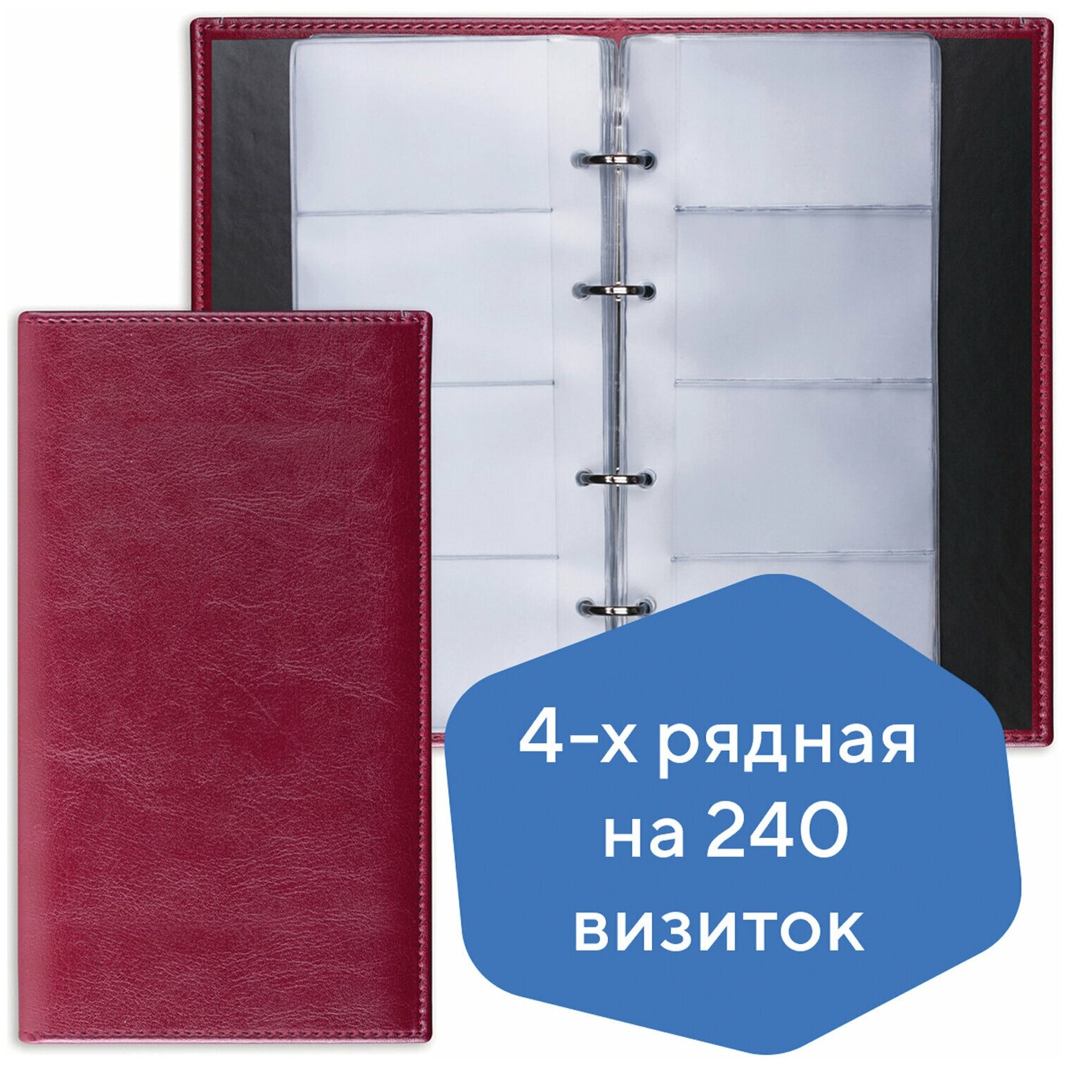 визитница на кольцах Brauberg "Imperial" под гладкую кожу на 240 визиток бордовая 231665