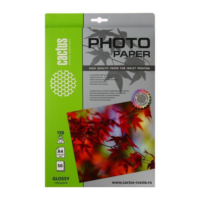 В упаковке 50 листов белой глянцевой фотобумаги формата А4.