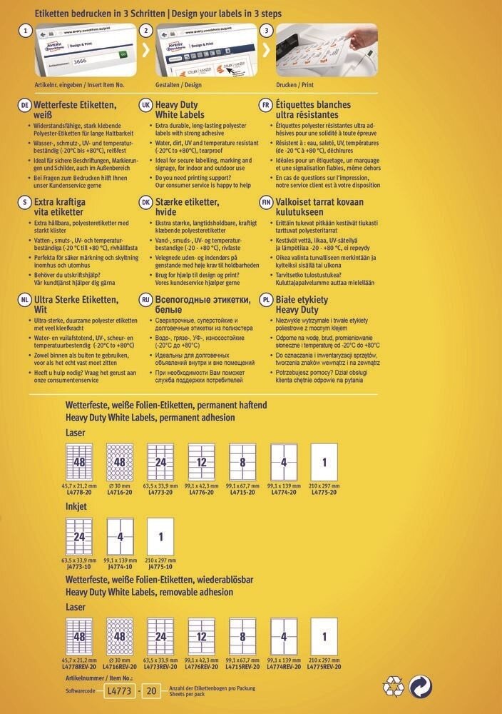 | Название | Этикетки Avery Zweckform L4776-20 |