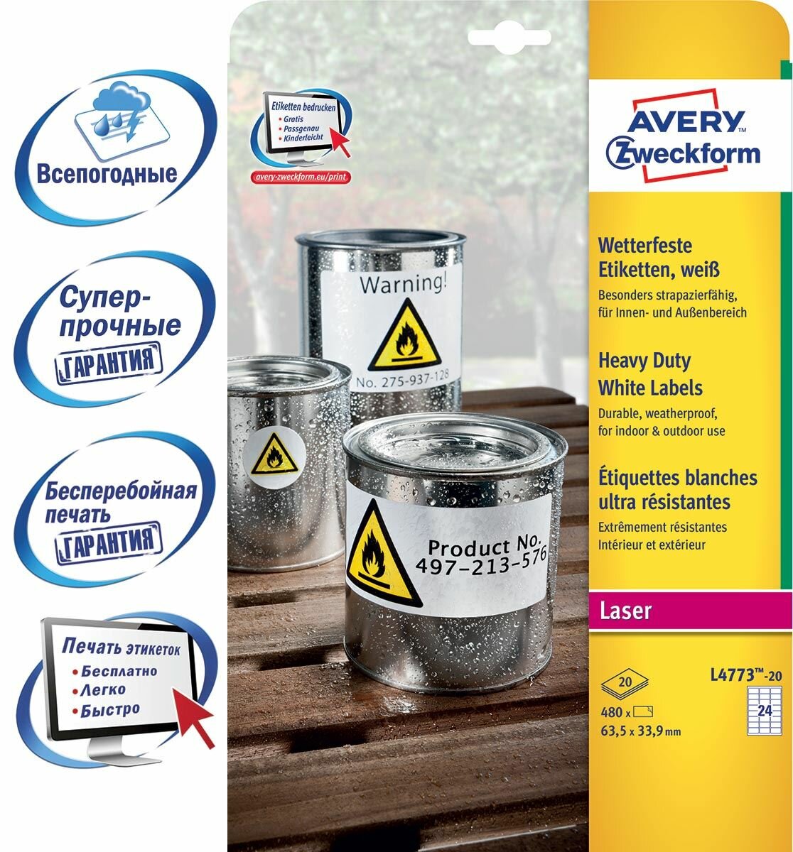 Сервис сравнения цен СкидкаГИД предлагает сравнить цены на товар «самоклеящиеся этикетки Avery Zweckform 635х339 мм белые всепогодн. высокопрочн. перманентн. 20л 480шт L4773-20»