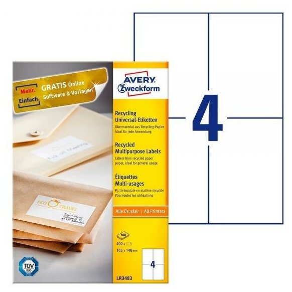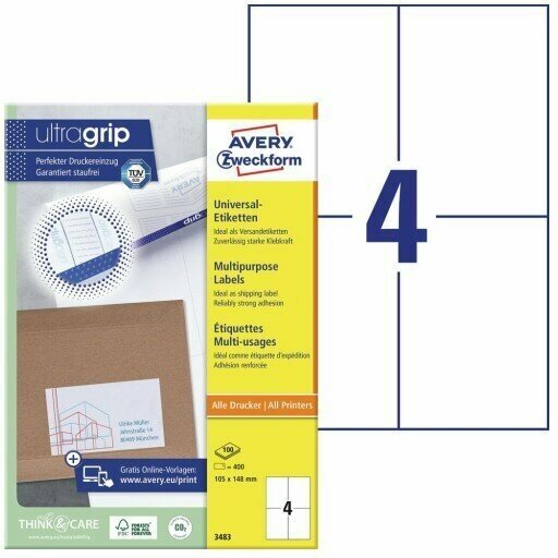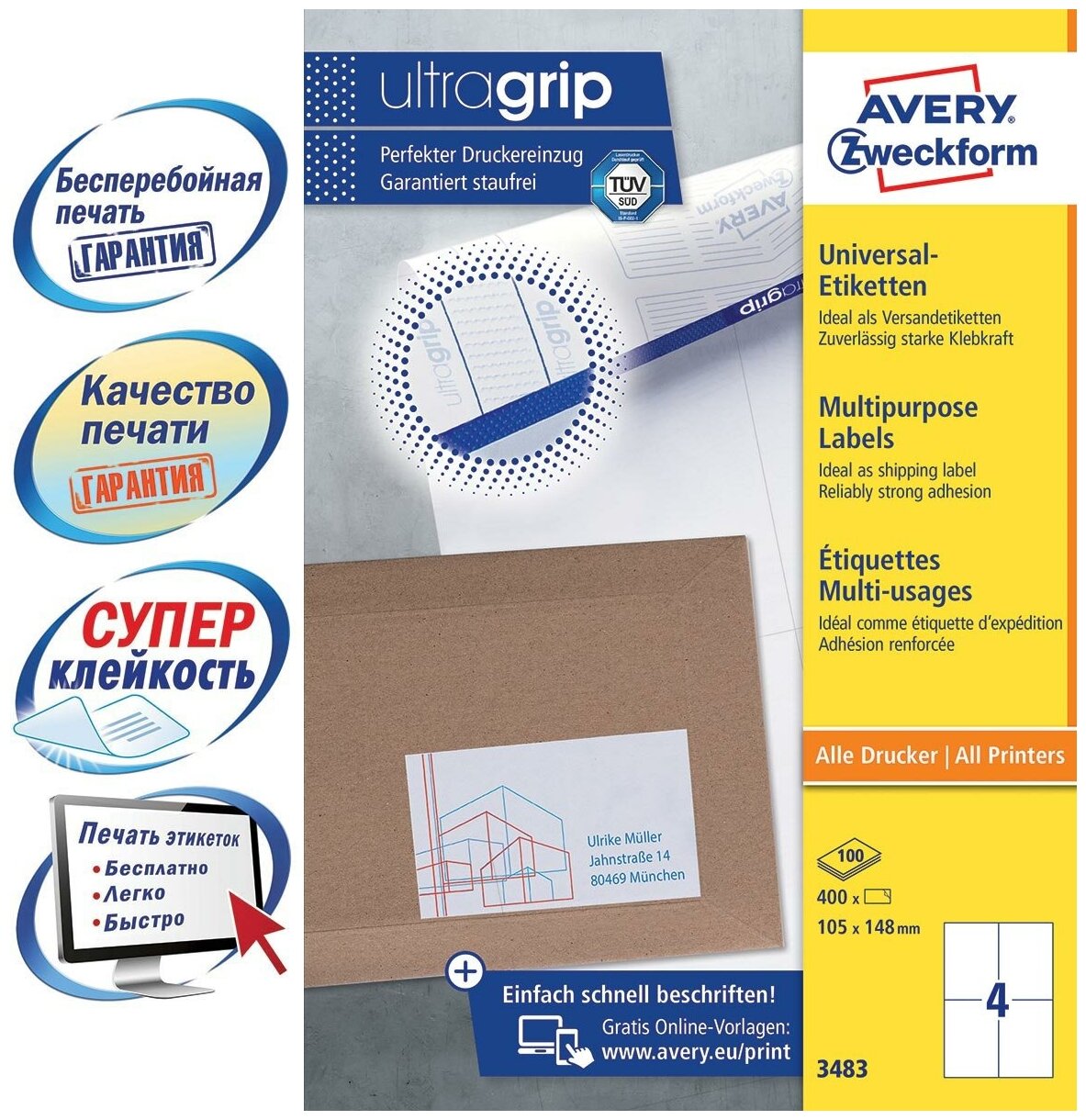 самоклеящиеся этикетки Avery Zweckform 105х148 мм белые универсальные перманентные 100л 400шт 3483