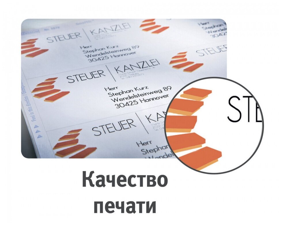 | Особенности | Диапазон применения: от этикеток для конвертов до применения на производстве, маркировки и т.д. |
