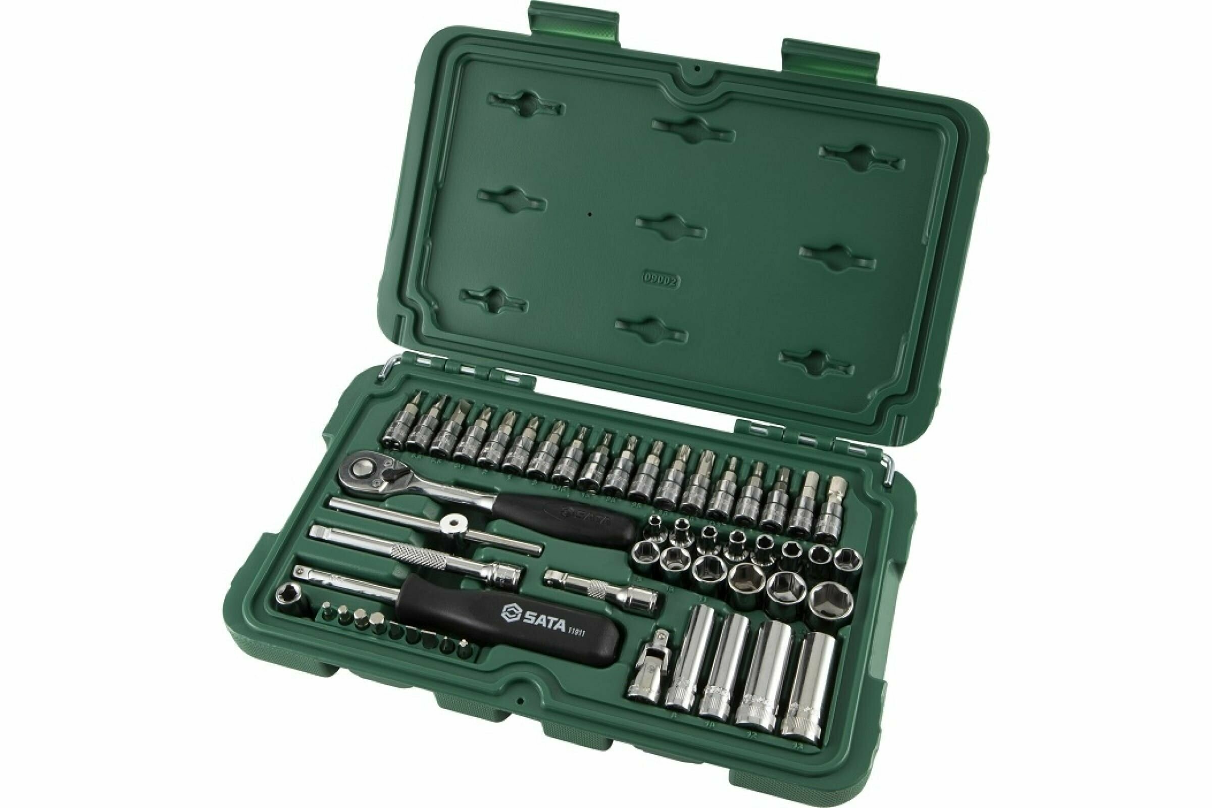 Набор торцевых головок и бит на привод 1/4". Эталонное качество SATA. Торговая марка SATA появилась в 1997 году и преимущественно была ориентирована на внутренний рынок КНР, но за короткий промежуток времени продукция стремительно набрала популярность по всему миру. Сейчас инструменты SATA используются в автомобильном производстве и авторемонте, в строительстве объектов атомно-энергетической и нефтехимической промышленности, а также на других ответственных участках производства.