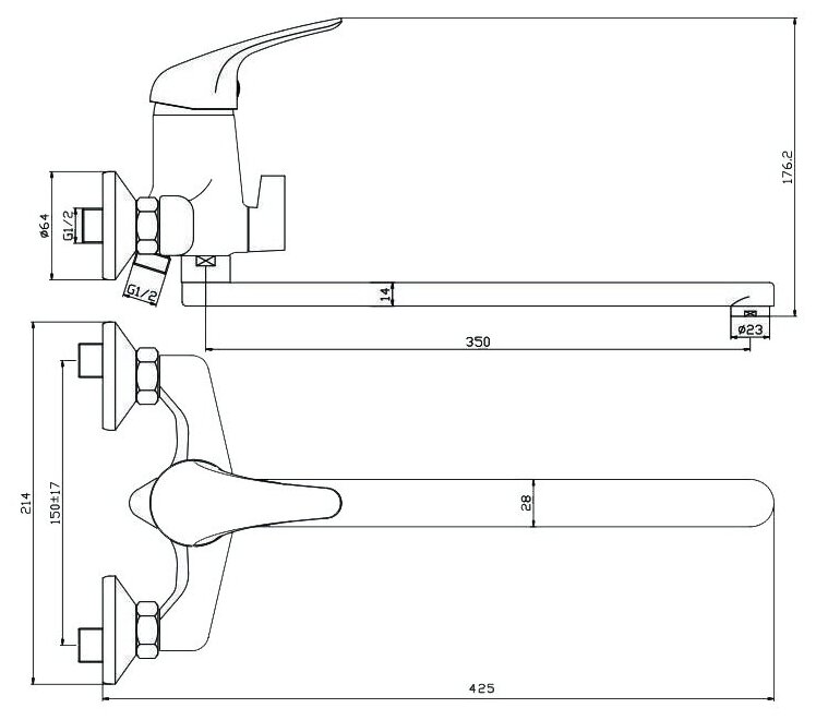 | Оснащение | душевой шланг, душевая лейка, дивертор, крепления, эксцентрики, аэратор, держатель для душевой лейки |