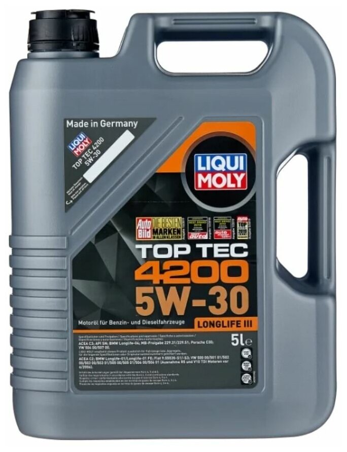 - Моторное масло LIQUI MOLY Top Tec 4200 5W30 A3 B4 C3 5л