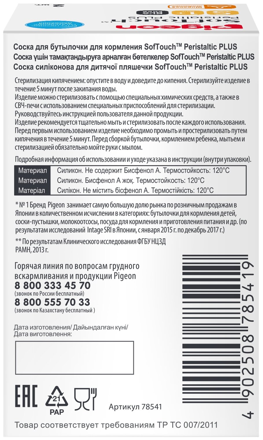Соска для бутылочки Pigeon Peristaltic Plus 01826