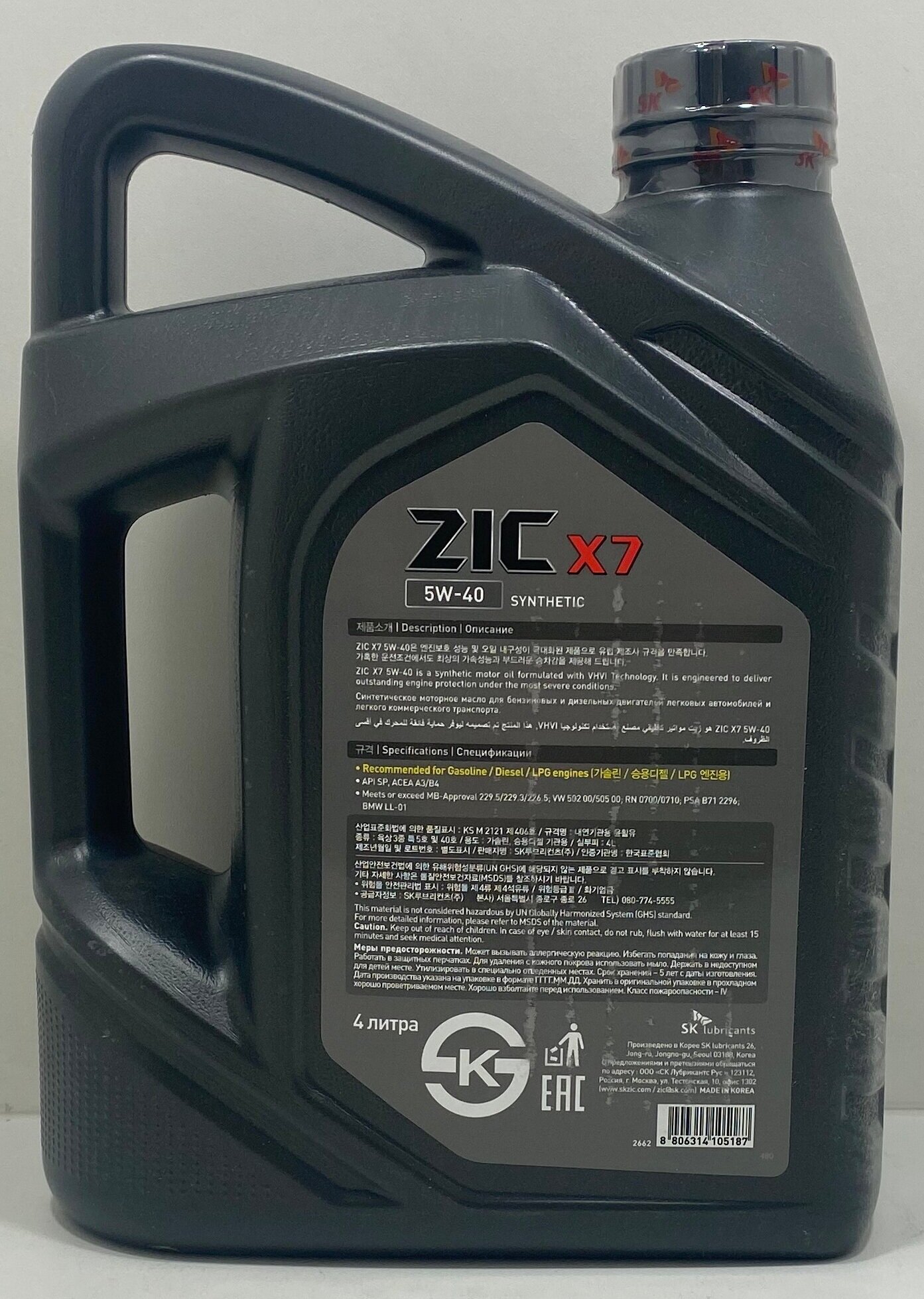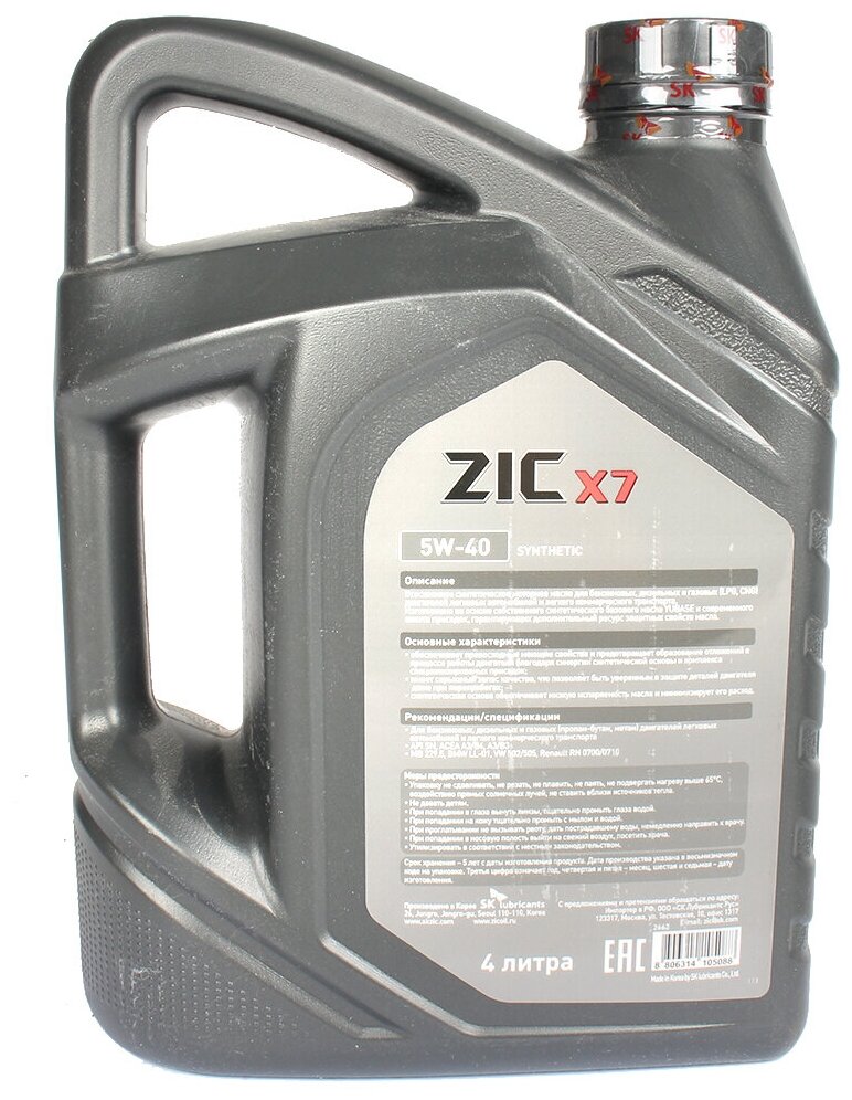 - Моторное масло ZIC X7 5W-40 4л синтетическое