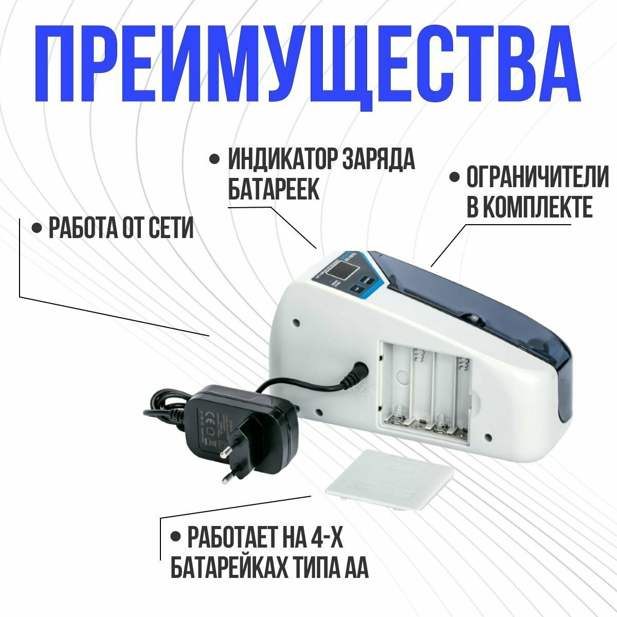 | Тип электропитания | батарейки AAх4, от сети 110-240В 50/60ГЦ |