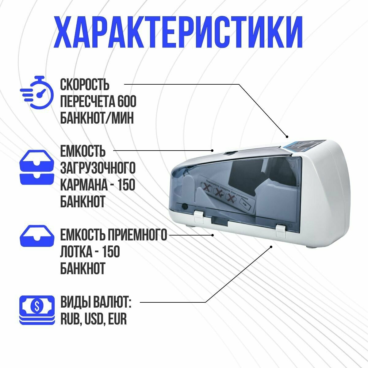 | Скорость счёта банкнот | 600 банкнот в минуту |