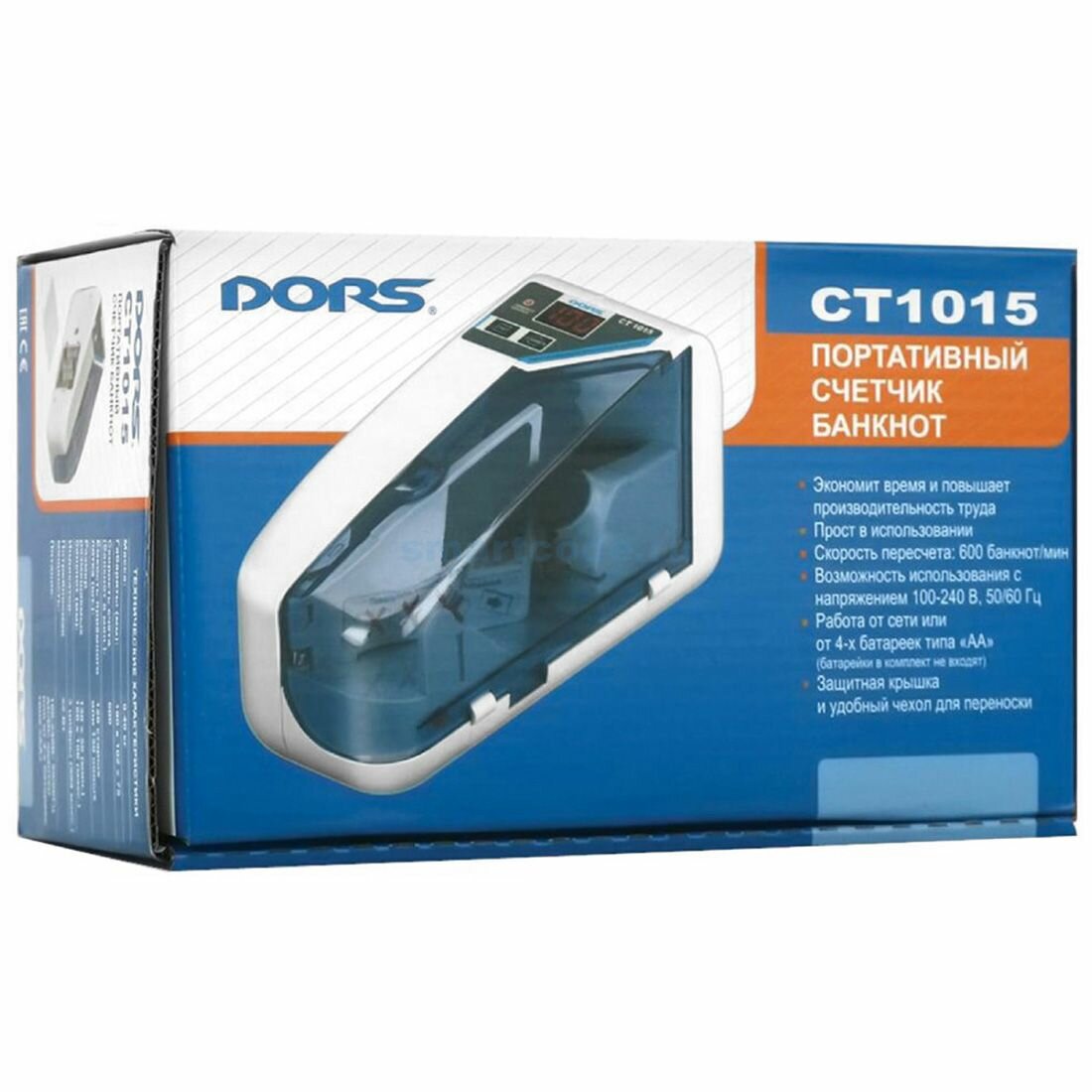 Особенности модели DORS CT1015: Бережный пересчет банкнот различной степени изношенности; Компактные размеры, счетчик занимает мало места на рабочем столе оператора; Работа в режиме суммирования позволяет пересчитать любое количество банкнот; Стационарное или мобильное использование: питание от сети 220В или от 4 штук пальчиковых батареек; Индикация включенных режимов работы: нет необходимости помнить все настройки счетчика, достаточно просто посмотреть на панель управления; Оптическая плотность бумаги определяется как среднее значения пропускания ИК света, прошедшего через банкноту. Это базовый уровень контроля, обязательный для любого счетчика банкнот.