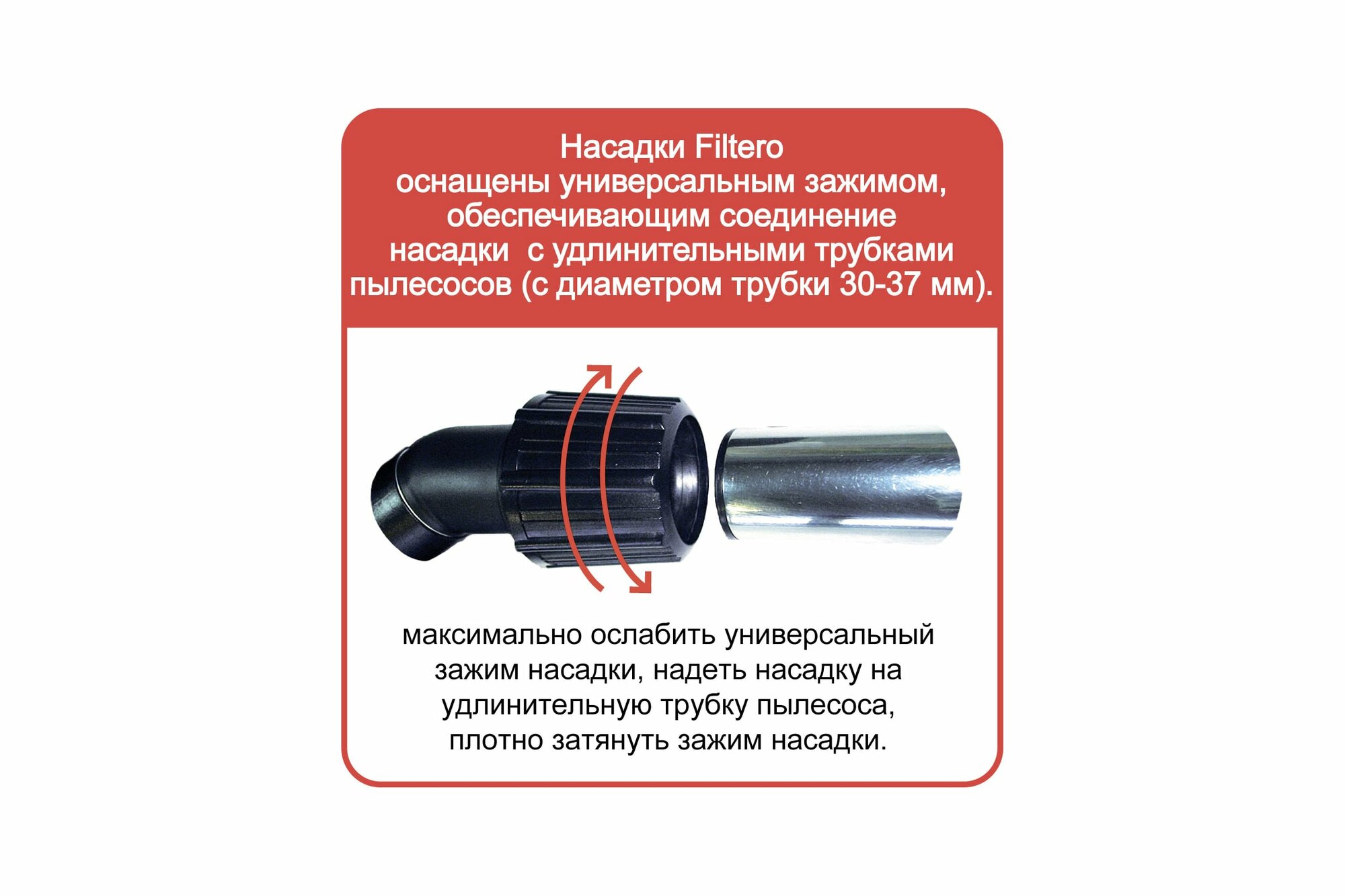 Техника для дома Filtero Насадка с резиновыми вставками для влажной уборки жестких поверхностей для пылесосов с диаметром трубы от 30 до 37 мм. Насадка оптимально подходит для промышленных пылесосов с универсальным изменяющимся в диаметре соединителем.