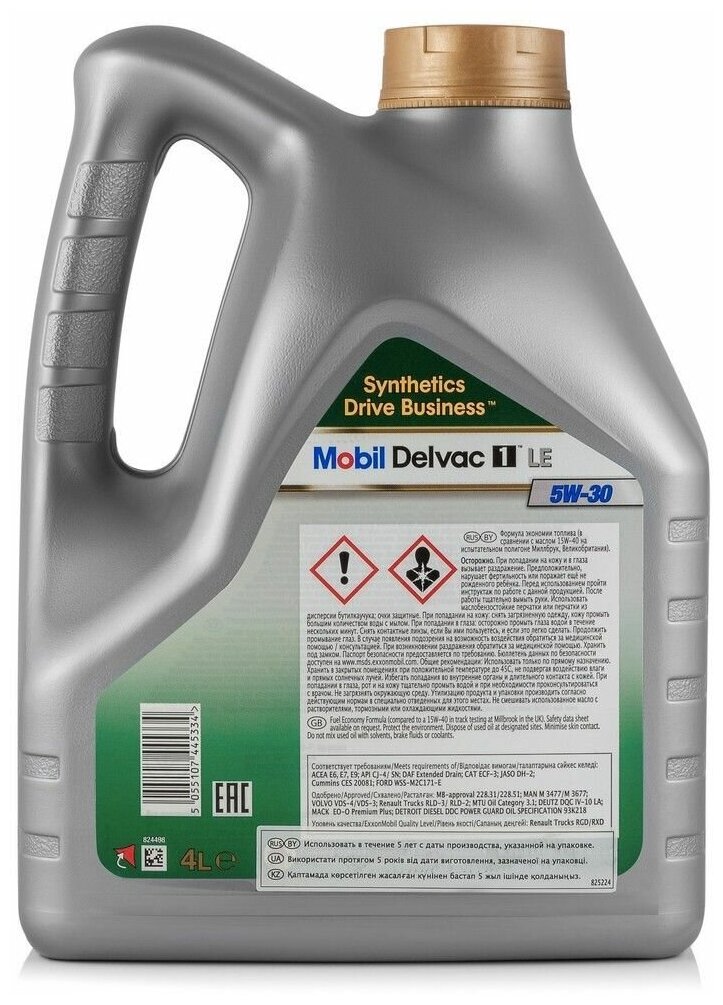 Mobil Delvac 1 LE 5W-30 - полностью синтетическое моторное масло для высокомощных дизельных двигателей, которое сочетает передовую защиту двигателя в современных автомобилях с низкой токсичностью выхлопа и значительный потенциал экономии топлива, а также другие устойчивые преимущества, такие как долговечность двигателя, защита выхлопной системы и увеличенные интервалы замены масла.