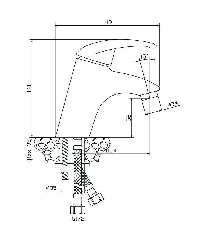| Диаметр отверстия в раковине | 35 |